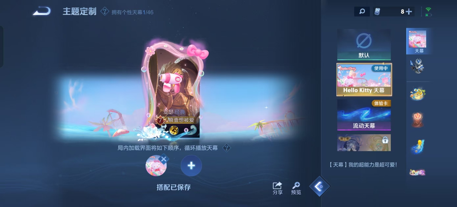 杨玉环银翎春语,大乔乘龙·忆丹青,刘邦德古拉伯爵,貂蝉圣诞恋歌,夏侯惇乘风破浪,貂蝉唤灵魅影,阿轲节奏热浪,安琪拉心灵骇客,西施诗语江南,小乔青蛇,孙尚香时之恋人,孙策猫狗日记,不知火舞魅语,雅典娜冰冠公主,李元芳逐浪之夏,瑶遇见神鹿,王昭君偶像歌手