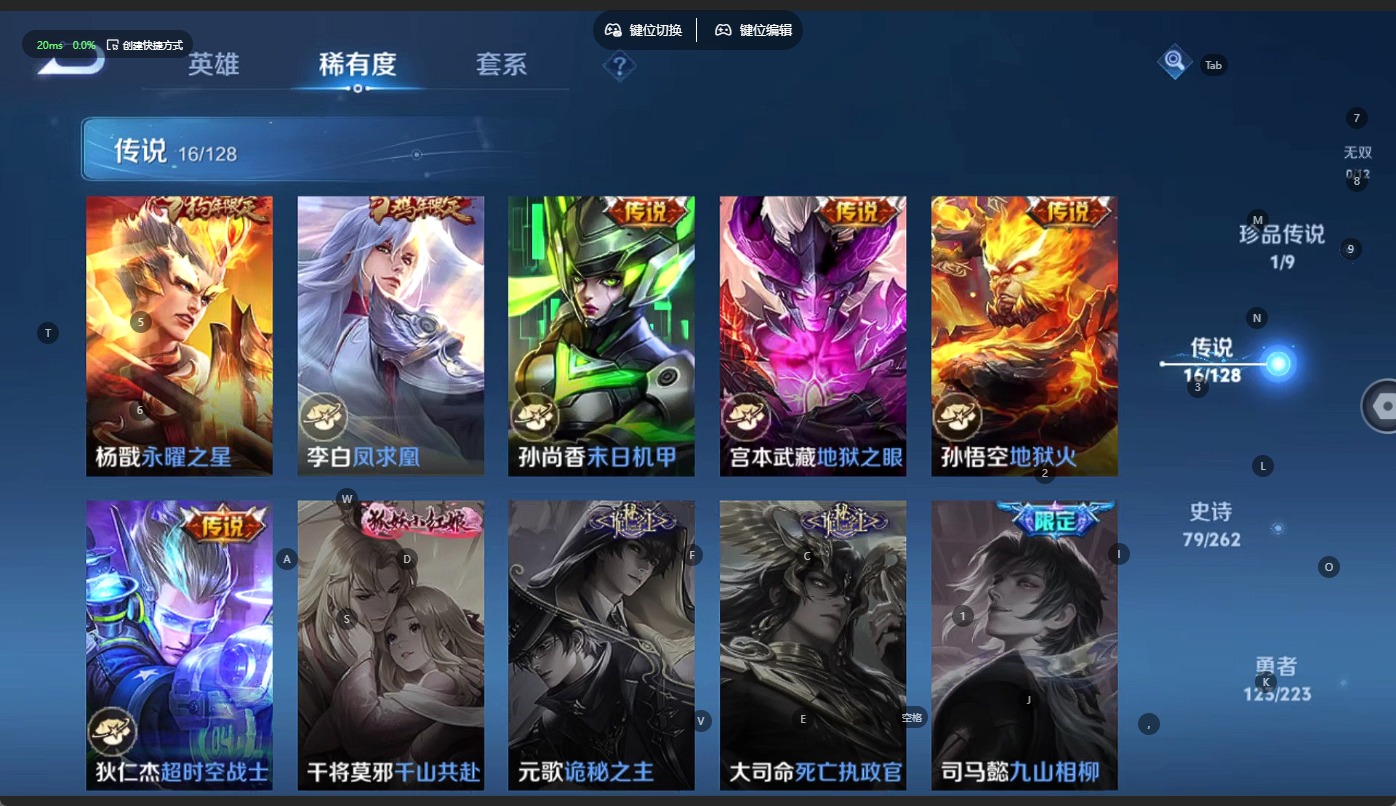 - [11552666]V10 1典藏 1珍品传说 9传说 125英雄 277皮肤 可修改实名 优质装备:全息碎影(猴子典藏),末日机甲-孙尚香(绿蚂蚱),地狱之眼,艾琳觅芳踪 珍品传说:兔狲·蓬尾 传说皮:云诺千山 珍宝阁皮:女武神 限定皮:至尊宝,凤求凰(白切鸡),太华(伽罗年限),飞衡(韩信年限),遇见飞天,五谷丰年,冰锋战神,游园惊梦,梁祝,逐梦之影,永曜之星,辉光之辰,霸王别姬-项羽,圣诞老人,真爱至上,孙行者,天魔缭乱,青春决赛季,美猴王 史诗皮:鸭鸭历险记-刘禅,化蝶舞,龙之律动,布丁狗之誓,石田雨龙,百相守梦-黄忠,遇见神鹿,紫霞仙子,苍穹之光,白龙吟,黄金分割率,特工魅影,千年之狐,百解令(蒙犽),白蛇,晚萤,猫狗日记-孙策,时之恋人-孙尚香,乱世虎臣,节奏热浪,修罗,女仆咖啡,摇滚巨星,水果甜心,时之奇旅-安琪拉,功夫厨神,德古拉伯爵,暗隐猎兽者,鬼剑武藏,地狱岩魂,纤云弄巧,繁星吟游(呼啦呼啦),拒霜思,缤纷独角兽,乘风破浪,逐浪之夏,水晶猎龙者,曙光守护者,金属风暴,原初追逐者,圣诞狂欢,圣诞恋歌,鹰眼统帅,魅力维加斯,无心,未来纪元-赵云
