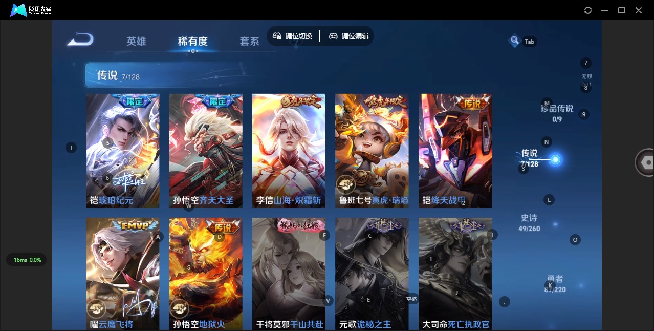 - [11864170]V7 1无双 8传说 123英雄 163皮肤 可修改实名 优质装备:碎月剑心(李白无双),云鹰飞将(小将军),炽阳神光,无双飞将,山海·琳琅生(小乔年限) 珍宝阁皮:蔷薇恋人 限定皮:鸣野蒿,时雨天司(水龙头),飞衡(韩信年限),无限倾心-项羽,高山流水,诗剑行,五谷丰年,梁祝,孙行者,神器·万象笔,山海·玄木吟(马可年限) 史诗皮:龙之律动,紫霞仙子,黄金分割率,特工魅影,千年之狐,江河有灵,无限星赏官,偶像歌手,末日机甲-吕布,猫狗日记-大乔,时之恋人-孙尚香,修罗,女仆咖啡,水果甜心,暗隐猎兽者,幽灵船长,鬼剑武藏,暗渊魔法,心灵战警,地狱岩魂,纤云弄巧,乘风破浪,逐浪之夏,水晶猎龙者,曙光守护者,热力回旋,金属风暴,圣诞狂欢,圣诞恋歌,鹰眼统帅,魅力维加斯,无心