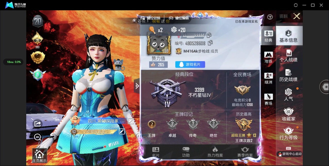 - PX_2081163-贵族等级: V3 英雄数: 89 皮肤数: 58 传说皮: 妄想实况 限定皮: 五谷丰年