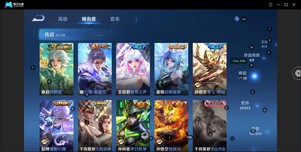 - [12175987]V6 3传说 124英雄 165皮肤 可修改实名 优质装备:无双飞将,妄想实况 珍宝阁皮:胡桃夹子,万物之道 限定皮:鸣野蒿,飞衡(韩信年限),遇见飞天,五谷丰年 史诗皮:龙之律动,紫霞仙子,江河有灵,电玩·爆裂旋风,末日机甲-吕布,乱世虎臣,修罗,摇滚巨星,水果甜心,功夫厨神,暗隐猎兽者,幽灵船长,鬼剑武藏,地狱岩魂,纤云弄巧,拒霜思,缤纷独角兽,逐浪之夏,水晶猎龙者,金属风暴,圣诞恋歌,鹰眼统帅,暗夜贵公子,魅力维加斯,天秀·音浪,无心,未来纪元-赵云