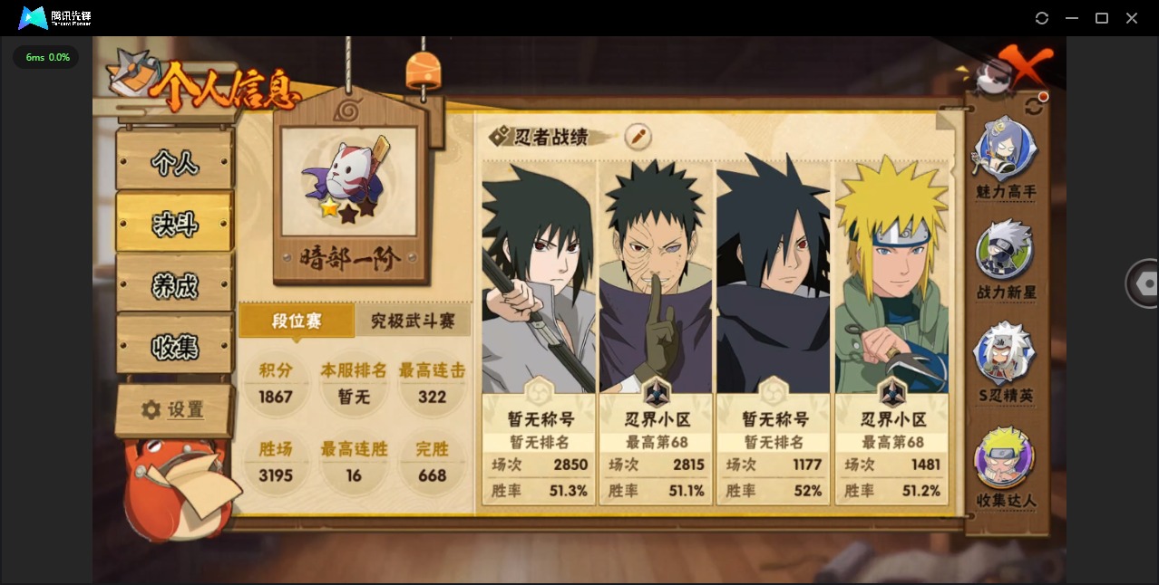 - [11681219]V10 15S忍 13A忍 15通灵 584.6W战力 可二次 可修改实名 优质装备:迈特凯「死门」,宇智波带土 「忍界大战」,“宇智波斑” 「白面具」,漩涡鸣人 「九喇嘛连结」,宇智波佐助「永恒万花筒」,宇智波斑「秽土转生·解」,艾「忍界大战」,宇智波止水「须佐能乎」,旗木卡卡西「须佐能乎」,自来也 「传说中的三忍」 S级忍者:自来也 「舞之豪杰」,宇智波鼬 「须佐能乎」,佩恩「天道」,波风水门,大蛇丸