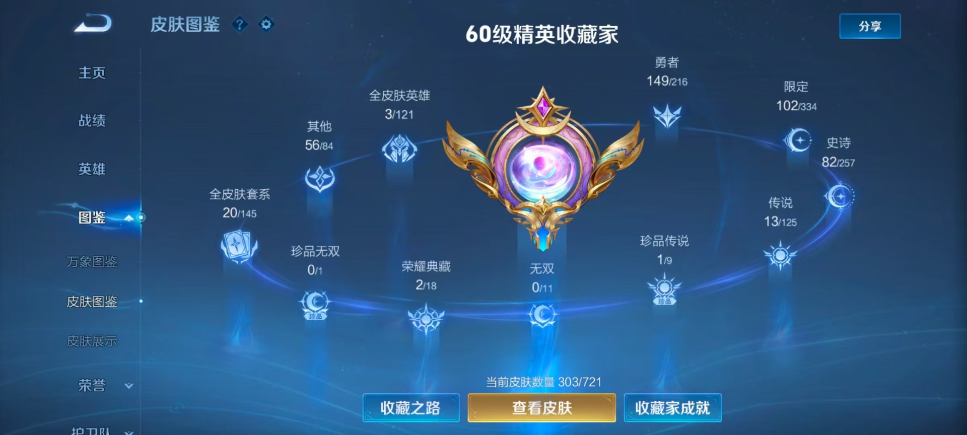 - PX_2091345-实名: 可修改 贵族等级: V5 英雄数: 122 皮肤数: 174 传说皮: 幻光神枪 限定皮: 遇见飞天,李小龙,梁祝,玄嵩,奇迹圣诞,天狼狩猎者,至尊宝,高山流水,五谷丰年,逐霄战戟