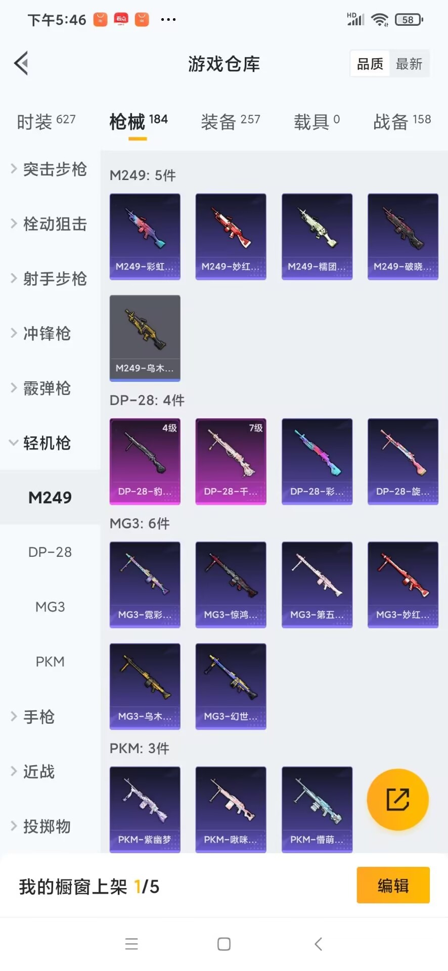 - [12032220]2特效枪 2印记 可二次 可修改实名 优质装备:Kar98K-巳巳如意 稀有枪皮:DP-28-豹影疾电 五级特效枪:五级Kar98K-巳巳如意,五级DP-28-豹影疾电 紫色装扮:SS30特训套装,SS31特训套装,SS33特训套装,顶瓜瓜,人气偶像,黑色伏地魔,冰河战士,蝶变,香桃花海,缤纷果语,SS29特训,星途旅人,巳巳如意,异域银装,竞技名士,都市丽猫,街头风暴,光矢逐梦,粉红小猪,大橘大利,SS32特训服(SS32特训套装),恋语绒绒 优质战备:星途旅人降落伞