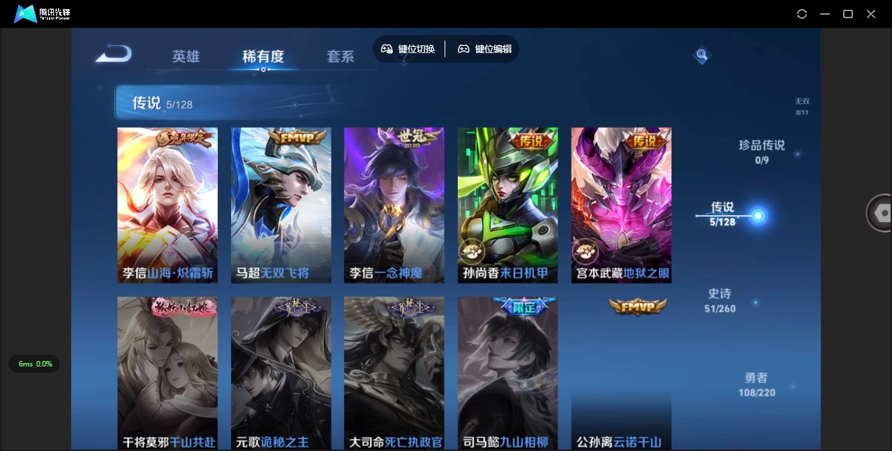 - [11959477]V8 10传说 125英雄 256皮肤 典藏英雄武则天 可修改实名 优质装备:黄金狮子座,冠军飞将,云鹰飞将(小将军),黄金白羊座,一念神魔,末日机甲-孙尚香(绿蚂蚱),地狱之眼 珍宝阁皮:优雅恋人,女武神 限定皮:至尊宝,凤求凰(白切鸡),神威(电光马子),飞衡(韩信年限),遇见飞天,高山流水,青龙志(铠年限),冰锋战神,天狼运算者,游园惊梦,逐梦之星,李小龙,永曜之星,辉光之辰,霸王别姬-虞姬,孙行者,猪悟能,引擎之心,青春决赛季 史诗皮:星界战将,龙之律动,百相守梦-百里守约,百相守梦-黄忠,紫霞仙子,苍穹之光,黄金分割率,特工魅影,千年之狐,永昼,魅语,蒙恬荣光圣徽,无限星赏官,冰冠公主,偶像歌手,晚萤,龙骑士(小龙虾),末日机甲-吕布,猫狗日记-孙策,猫狗日记-大乔,乱世虎臣,节奏热浪,修罗,女仆咖啡,摇滚巨星,水果甜心,天才门将,星夜王子,心灵骇客,功夫厨神,德古拉伯爵,暗隐猎兽者,幽灵船长,鬼剑武藏,心灵战警,舞动绿茵,地狱岩魂,纤云弄巧,缤纷独角兽,乘风破浪,逐浪之夏,水晶猎龙者,热力回旋,箭羽风息,金属风暴,原初追逐者,圣诞狂欢,圣诞恋歌,鹰眼统帅,暗夜贵公子,黎明之约,奇遇舞章,未来纪元-赵云