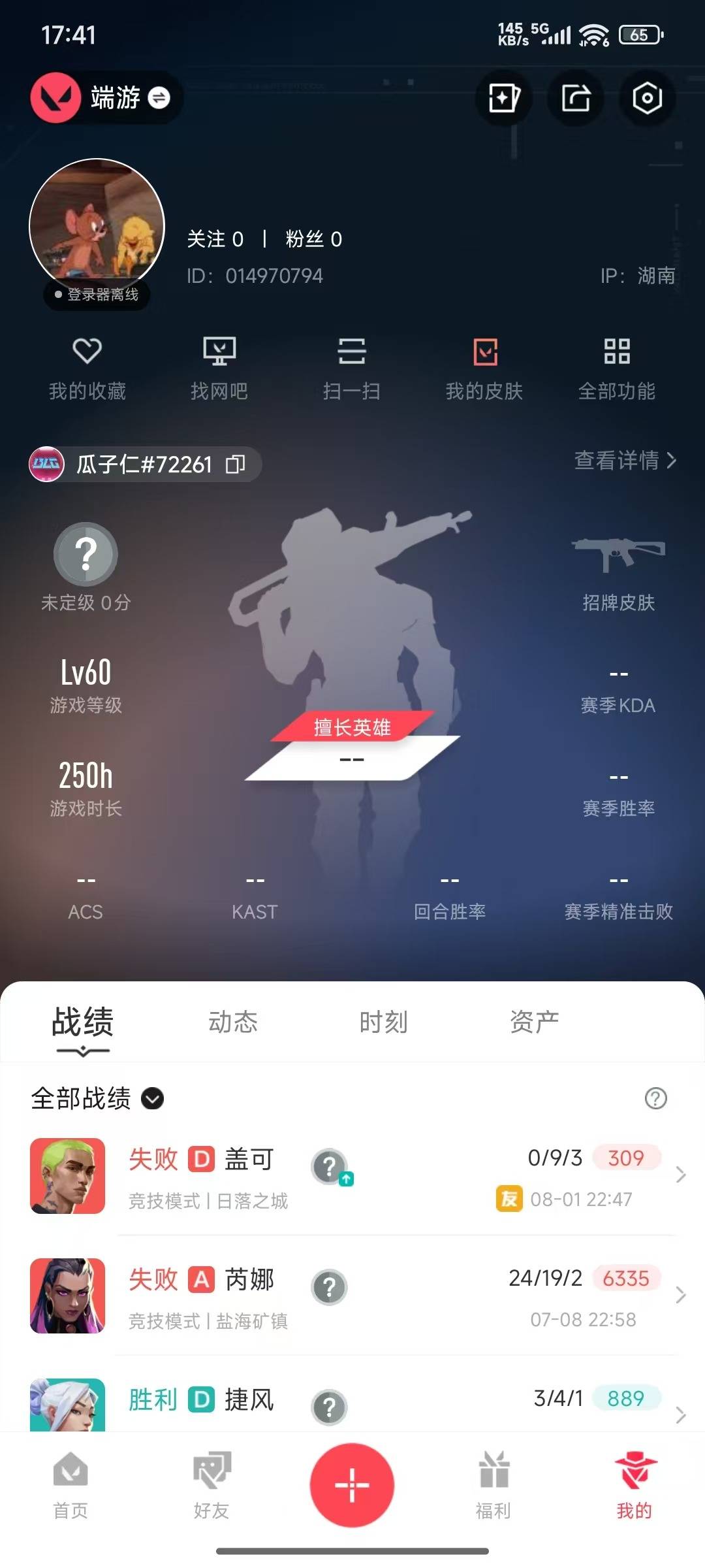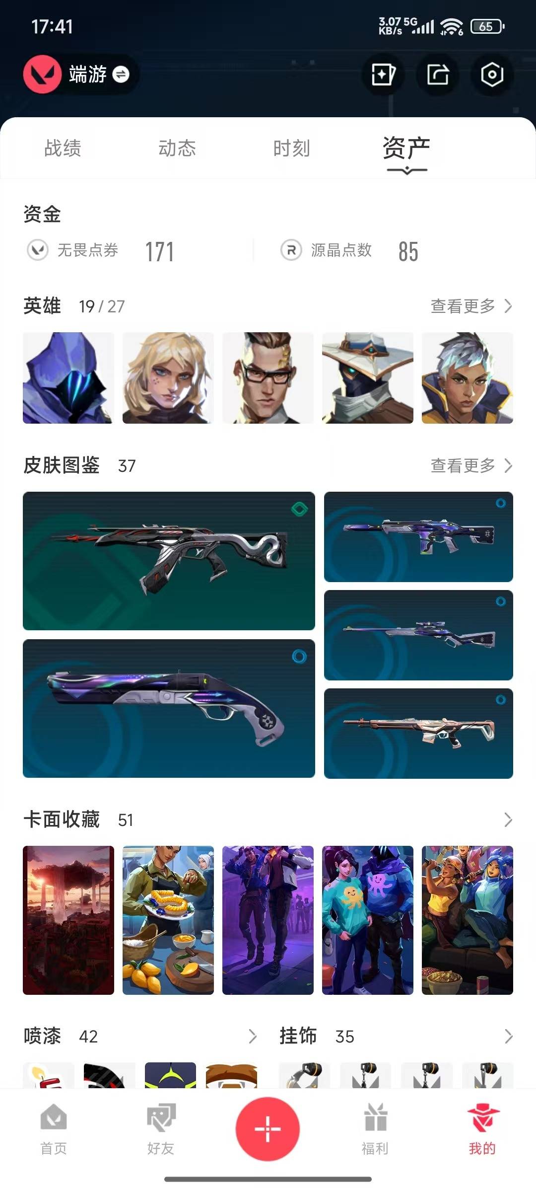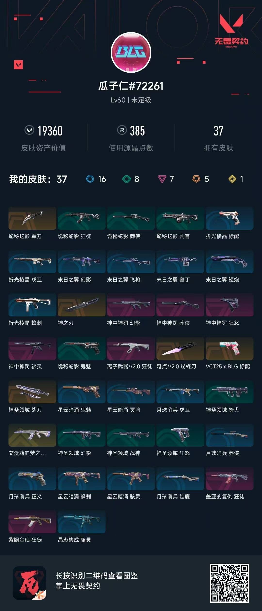 [12294631]5橙皮 1金皮 7紫皮 37皮肤 19英雄 51卡面 385已用源晶 未定级 优质装备:狂徒-艾沃莉的梦之翼,狂徒-紫阙金琅,狂徒-盖亚的复仇,蝴蝶刀-奇点//2.0,神圣领域 战刀,诡秘蛇影,神之刃 套装:神罚套装,神中神罚套装 佩枪皮肤:标配-VCT25xBLG,狂怒-神中神罚 冲锋枪皮肤:骇灵-神中神罚 步枪皮肤:幻影-神中神罚,狂徒-离子武器2.0 狙击枪皮肤:莽侠-神中神罚