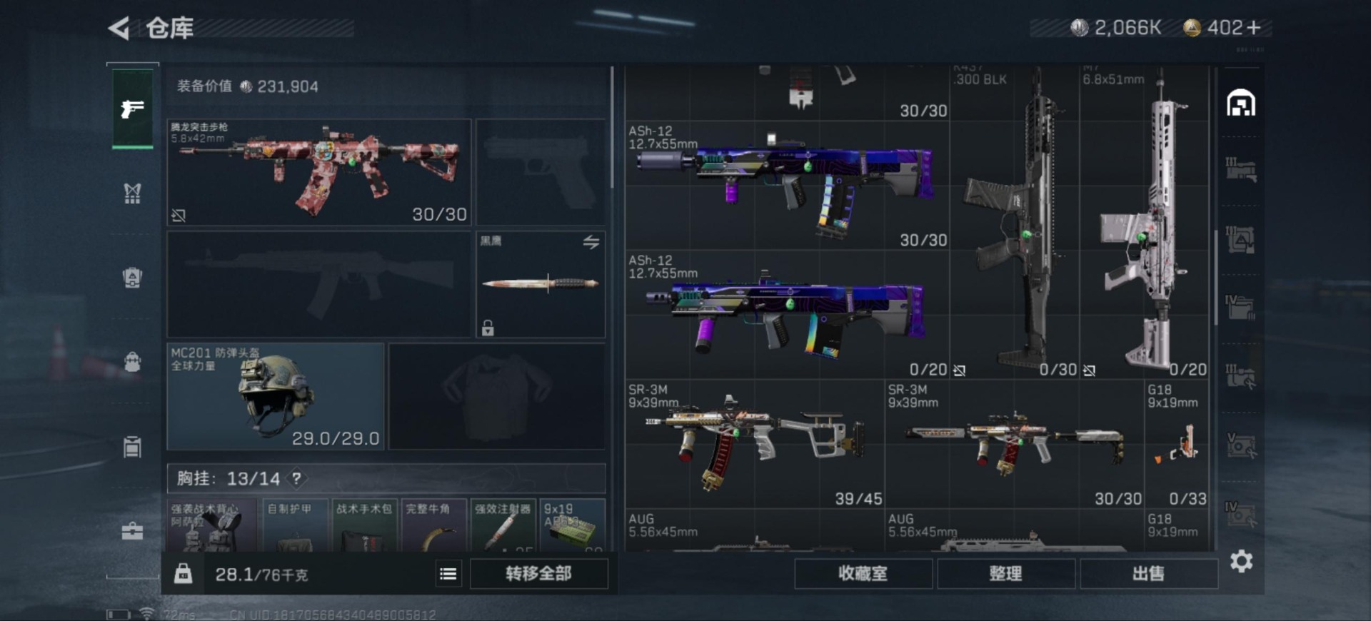 - [11529683]总资产:142M 1近战传说 13传说枪械 哈夫币:541.227K 高级安全箱(9.17到期) 可二次 可修改实名 优质装备:近战-北极星 烽火地带段位:钻石 全面战场段位:尉官 传说武器皮肤:SCAR-H战斗步枪-铁艺苍穹,AK-12突击步枪-夜鹰,SMG45冲锋枪-骑士,93R-捞点薯条,AWM狙击步枪-捞点薯条,腾龙突击步枪-捞点薯条,勇士冲锋枪-能天使-午夜邮差,复合弓-黑-天际线,K416突击步枪-幻想曲,725双管霰弹枪-送葬人-无题密令,QCQ171冲锋枪-北极星,CAR-15突击步枪-黑鹰坠落 史诗武器皮肤:QBZ95-1突击步枪-ACE,M4A1突击步枪-特勤执行,AUG突击步枪-特勤执行,Vector冲锋枪-红色彗星,PTR-32战斗步枪-ACE,SKS射手步枪-ACE,AUG突击步枪-蝮蛇,G3战斗步枪-战场英杰,SVD狙击步枪-暗夜猎手,AS Val突击步枪-尖端治疗,M700狙击步枪-守夜人,SG552突击步枪-尖端治疗,PKM通用机枪-荒野求生,MP5冲锋枪-深海恐惧,勇士冲锋枪-深海恐惧,AKM突击步枪-林中猎手,.357左轮-幸运时刻,SR-3M紧凑突击步枪-荒野求生,M1014霰弹枪-林中猎手,SVD狙击步枪-荒野求生,AS Val突击步枪-典狱官,M250通用机枪-囚徒,腾龙突击步枪-无垢,MP7冲锋枪-无垢,PSG-1射手步枪-无垢,M14射手步枪-黑鹰坠落,SVD狙击步枪-阿萨拉工艺,S12K霰弹枪-曙光,PKM通用机枪-英雄,M700狙击步枪-竞技风