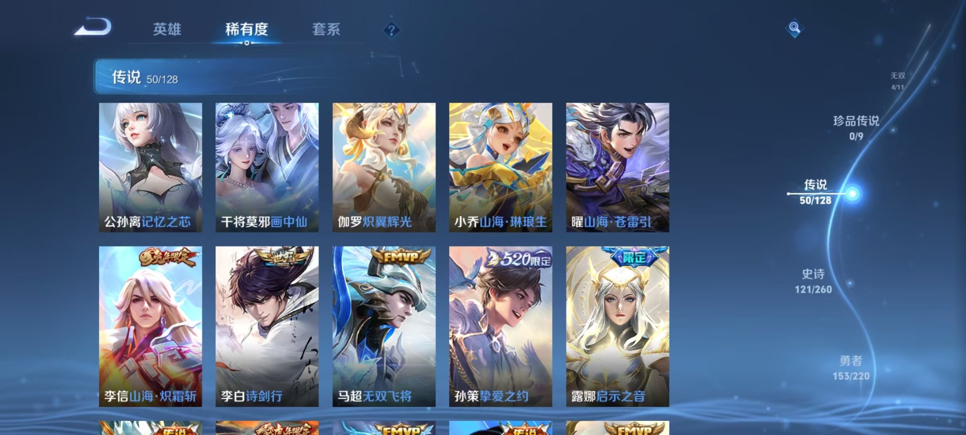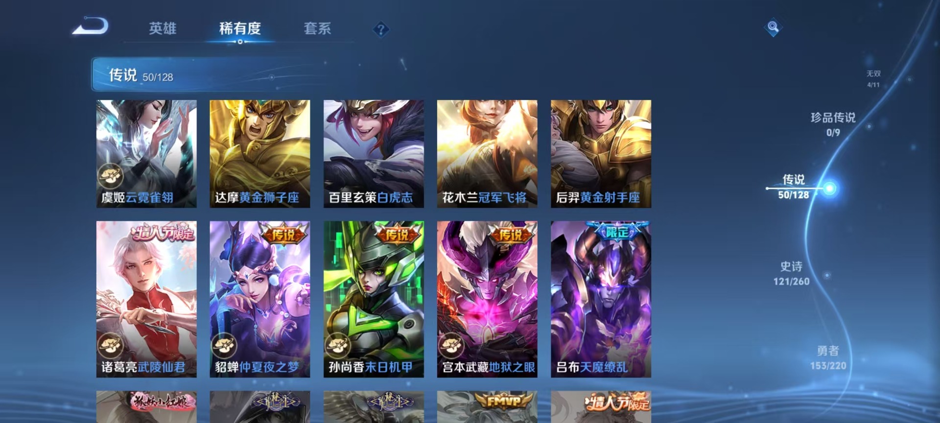 - [12226954]V9 1典藏 2珍品传说 22传说 126英雄 320皮肤 典藏英雄武则天 可修改实名 优质装备:幻阙歌(貂蝉典藏),怪盗基德,大耳狗之梦,黄金狮子座,黄金射手座,冠军飞将,云鹰飞将(小将军),久胜战神,一念神魔,末日机甲-孙尚香(绿蚂蚱),地狱火,海洋之心,地狱之眼,时之恋人-刘备(电焊工),游龙清影(小青龙),超时空战士-狄仁杰,无双飞将,霜月吟 传说皮:典韦战鼓燎原 珍宝阁皮:妄想食味 限定皮:愿照·九州拓(澜年限),逐霄战戟,鸣野蒿,至尊宝,白虎志(电光耗子),凤求凰(白切鸡),寅虎·展翼(孙膑年限),魔法小厨娘,神威(电光马子),飞衡(韩信年限),怒海麟威,梁祝,李小龙,逐梦之影,大圣娶亲,神奇女侠 史诗皮:鸭鸭历险记-刘禅,器灵·浮梦炉,化蝶舞,星界战将,龙之律动,布丁狗之誓,百相守梦-周瑜,茶境仙,幻珠鲛人,东方月初,蒙犽顽岩魄,埋骨钱,百相守梦-百里守约,百相守梦-黄忠,紫霞仙子,苍穹之光,白龙吟,黄金分割率,特工魅影,千年之狐,魅语,高渐离燃音魔法,无限星赏官,冰冠公主,青蛇,偶像歌手,龙骑士(小龙虾),末日机甲-吕布,猫狗日记-孙策,猫狗日记-大乔,节奏热浪,修罗,女仆咖啡,摇滚巨星,水果甜心,绅士熊喵,天才门将,星夜王子,心灵骇客,功夫厨神,德古拉伯爵,暗隐猎兽者,鬼剑武藏,乐园奇幻夜,天秀·启明,纤云弄巧,繁星吟游(呼啦呼啦),缤纷独角兽,乘风破浪,逐浪之夏,水晶猎龙者,曙光守护者,箭羽风息,原初追逐者,圣诞狂欢,圣诞恋歌,鹰眼统帅,魅力维加斯,黎明之约,未来纪元-赵云