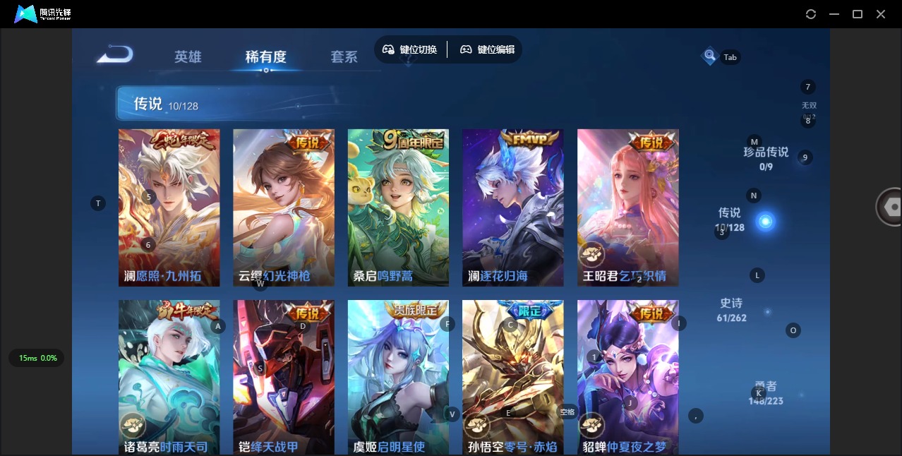 - [11877294]V7 8传说 124英雄 199皮肤 可修改实名 女号 优质装备:云鹰飞将(小将军),地狱火,地狱之眼,澜逐花归海 传说皮:典韦战鼓燎原,祥瑞亨通 珍宝阁皮:胡桃夹子,玩趣恶龙 限定皮:逐霄战戟,陌上桑,鸣野蒿,至尊宝,怒海麟威,五谷丰年,青龙志(铠年限),李小龙,猪悟能,美猴王 史诗皮:鸭鸭历险记-刘禅,星界战将,龙之律动,石田雨龙,茶境仙,破空之剑,百相守梦-百里守约,百相守梦-黄忠,紫霞仙子,电玩小子(小书包),特工魅影,千年之狐,末日机甲-莱西奥,百解令(蒙犽),冰冠公主,猫狗日记-孙策,节奏热浪,女仆咖啡,摇滚巨星,水果甜心,星夜王子,功夫厨神,德古拉伯爵,暗隐猎兽者,鬼剑武藏,舞动绿茵,纤云弄巧,乘风破浪,热力回旋,箭羽风息,金属风暴,圣诞狂欢,圣诞恋歌,鹰眼统帅,魅力维加斯,未来纪元-赵云