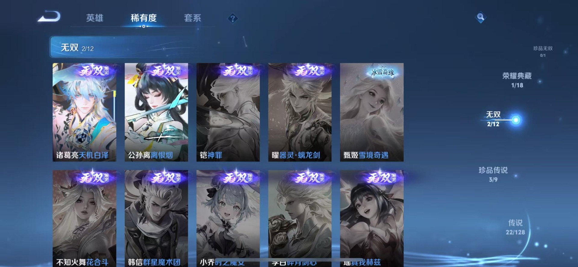 - PX_2104971-Q/最强王者/78皮肤/106英雄/0典藏/0珍品无双/0无双/0珍品传说/8传说/11史诗/7稀有英雄 【8 传说皮肤】地狱火 孙悟空,游龙清影 西施,仲夏夜之梦 貂蝉,霜月吟 露娜,乞巧织情 王昭君,一念神魔 李信,超时空战士 狄仁杰,幻光神枪 云缨, 【11 史诗皮肤】末日机甲 吕布,魅力维加斯 妲己,晚萤 娜可露露,鹰眼统帅 狄仁杰,引擎之心 赵云,鸭鸭历险记 刘禅,