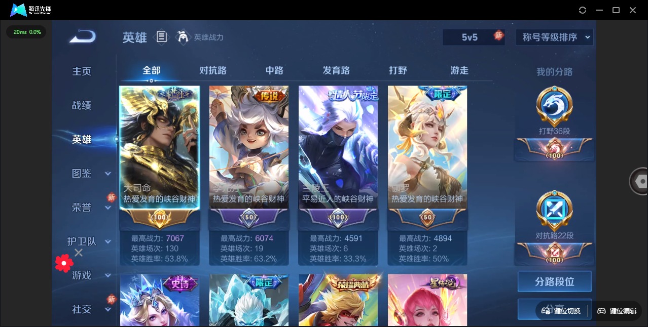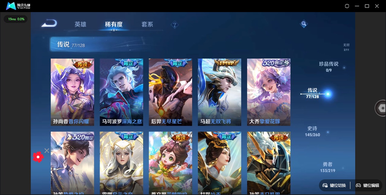 - [11525457]V7 7传说 117英雄 130皮肤 可修改实名 优质装备:黄金狮子座,一念神魔,末日机甲-孙尚香(绿蚂蚱),地狱火,零号·赤焰 珍宝阁皮:胡桃夹子 限定皮:逐霄战戟,鸣野蒿,至尊宝,时雨天司(水龙头),梁祝,李小龙,大圣娶亲 史诗皮:电玩小子(小书包),特工魅影,冰冠公主,暗夜猫娘,女仆咖啡,摇滚巨星,绅士熊喵,暗隐猎兽者,纤云弄巧,繁星吟游(呼啦呼啦),拒霜思,缤纷独角兽,逐浪之夏,金属风暴,圣诞狂欢,鹰眼统帅,无心