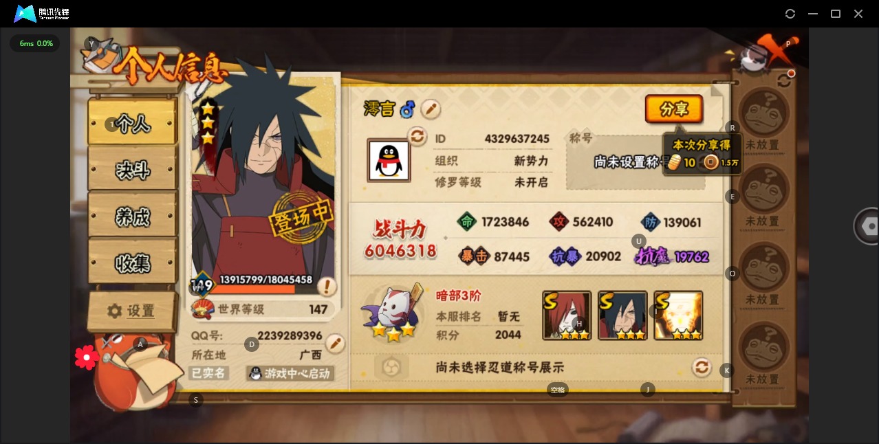 - [12138672]V3 5S忍 14A忍 9通灵 274.9W战力 可二次 可修改实名 优质装备:旗木卡卡西「须佐能乎」 S级忍者:自来也 「舞之豪杰」,宇智波鼬 「须佐能乎」,佩恩「天道」,自来也