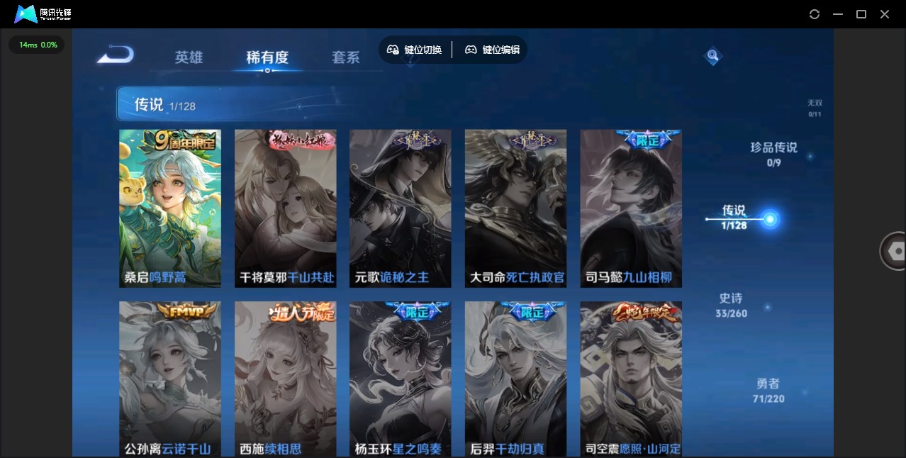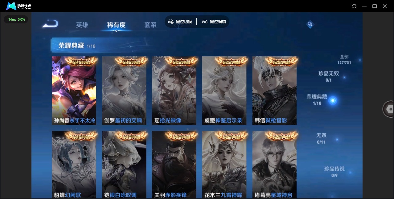 - [11625543]V6 1典藏 2传说 124英雄 160皮肤 可修改实名 荣耀水晶:星域神启(倪克斯贼亮) 传说皮:零号·赤焰 珍宝阁皮:女武神 限定皮:鸣野蒿,遇见飞天,李小龙,大圣娶亲 史诗皮:龙之律动,石田雨龙,特工魅影,冰冠公主,末日机甲-吕布,乱世虎臣,摇滚巨星,水果甜心,星夜王子,暗隐猎兽者,幽灵船长,纤云弄巧,繁星吟游(呼啦呼啦),缤纷独角兽,逐浪之夏,金属风暴,鹰眼统帅,魅力维加斯,未来纪元-赵云