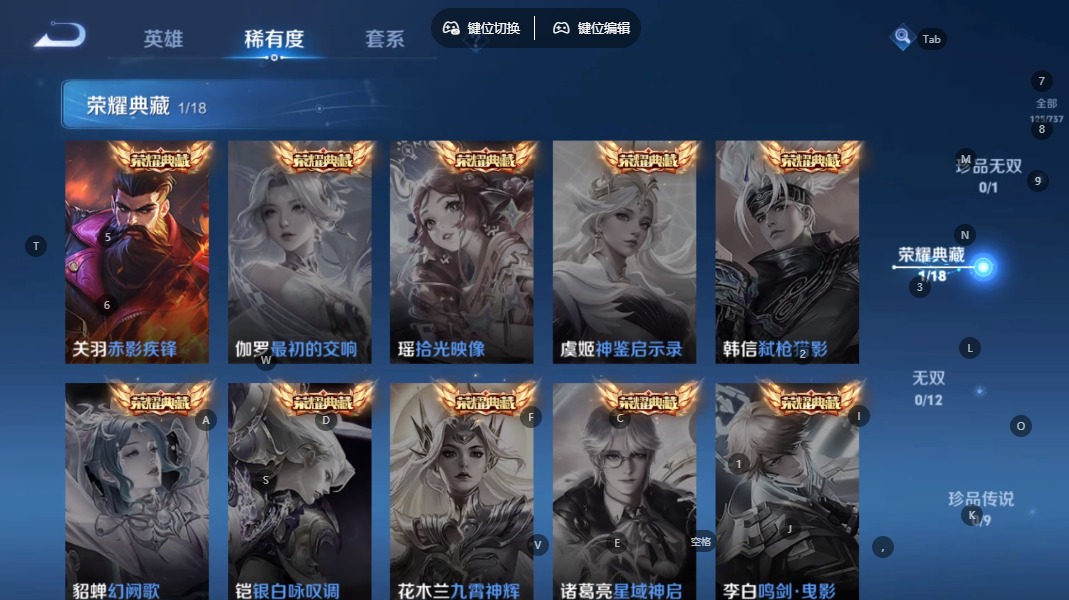 - [11471698]V7 1珍品传说 9传说 123英雄 207皮肤 可修改实名 优质装备:一念神魔,地狱火,零号·赤焰,超时空战士-狄仁杰,山海·炽霜斩(李信年限),妄想实况 珍品传说:时之奇旅-孙策 珍宝阁皮:蔷薇恋人,玩趣恶龙 限定皮:愿照·九州拓(澜年限),愿照·岁时盈(虞姬年限),时雨天司(水龙头),飞衡(韩信年限),五谷丰年,御风骁将(吕布年限),龙胆,逐梦之星,天狼绘梦者,李小龙,默契交锋-花木兰,大圣娶亲,山海·玄木吟(马可年限) 史诗皮:鸭鸭历险记-刘禅,器灵·浮梦炉,化蝶舞,龙之律动,白龙吟,黄金分割率,特工魅影,江河有灵,暗夜猫娘,魅语,青蛇,末日机甲-吕布,猫狗日记-孙策,时之恋人-孙尚香,乱世虎臣,节奏热浪,修罗,女仆咖啡,水果甜心,天才门将,心灵骇客,鬼剑武藏,地狱岩魂,纤云弄巧,繁星吟游(呼啦呼啦),拒霜思,缤纷独角兽,乘风破浪,曙光守护者,金属风暴,原初追逐者,圣诞狂欢,圣诞恋歌,鹰眼统帅,魅力维加斯,赏金猎手,无心,未来纪元-赵云