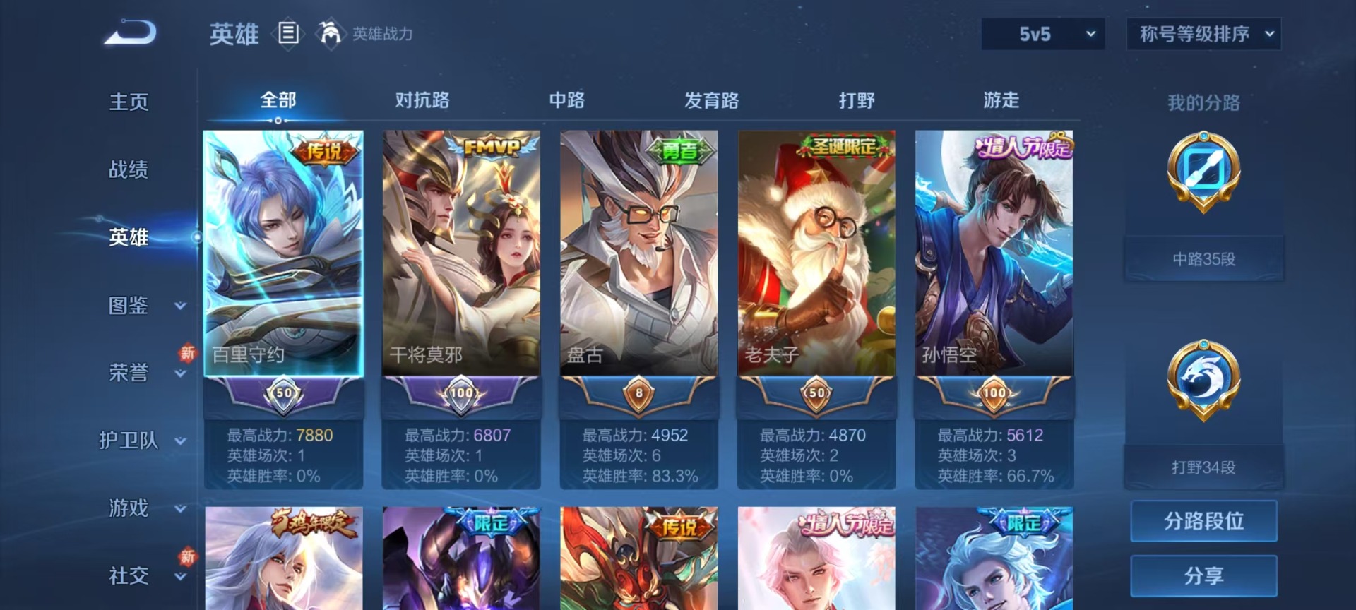- PX_2095716-实名: 可修改 贵族等级: V5 英雄数: 121 皮肤数: 99 传说皮: 黄金狮子座,久胜战神,无双飞将,琥珀纪元铠,琥珀纪元马超 限定皮: 梁祝,鸣野蒿