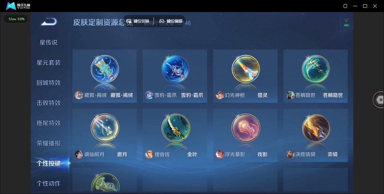 夏侯惇霜北刀,曹操天狼征服者,张飞虎魄,干将莫邪冰霜恋舞曲,典韦岱宗,司空震愿照·山河定,裴擒虎李小龙,上官婉儿梁祝,李白诗剑行,桑启鸣野蒿,猪八戒猪悟能,孙悟空孙行者,孙悟空大圣娶亲,孙悟空至尊宝,马超神威,韩信飞衡,墨子降魔,澜愿照·九州拓,王昭君凤凰于飞,关羽冰锋战神