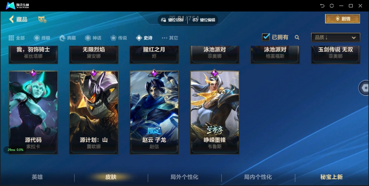 - [12057216]V6 6传说 98英雄 90皮肤 可修改实名 优质装备:冠军飞将,一念神魔,澜逐花归海 传说皮:乘龙·淬吴钩(孙策年限),幻光神枪 珍宝阁皮:万物之道 限定皮:愿照·九州拓(澜年限),李小龙 史诗皮:化蝶舞,龙之律动,石田雨龙,超元猎域,紫霞仙子,特工魅影,江河有灵,高渐离燃音魔法,晚萤,节奏热浪,水果甜心,天才门将,星夜王子,暗隐猎兽者,纤云弄巧,水晶猎龙者,金属风暴,鹰眼统帅,魅力维加斯,赏金猎手