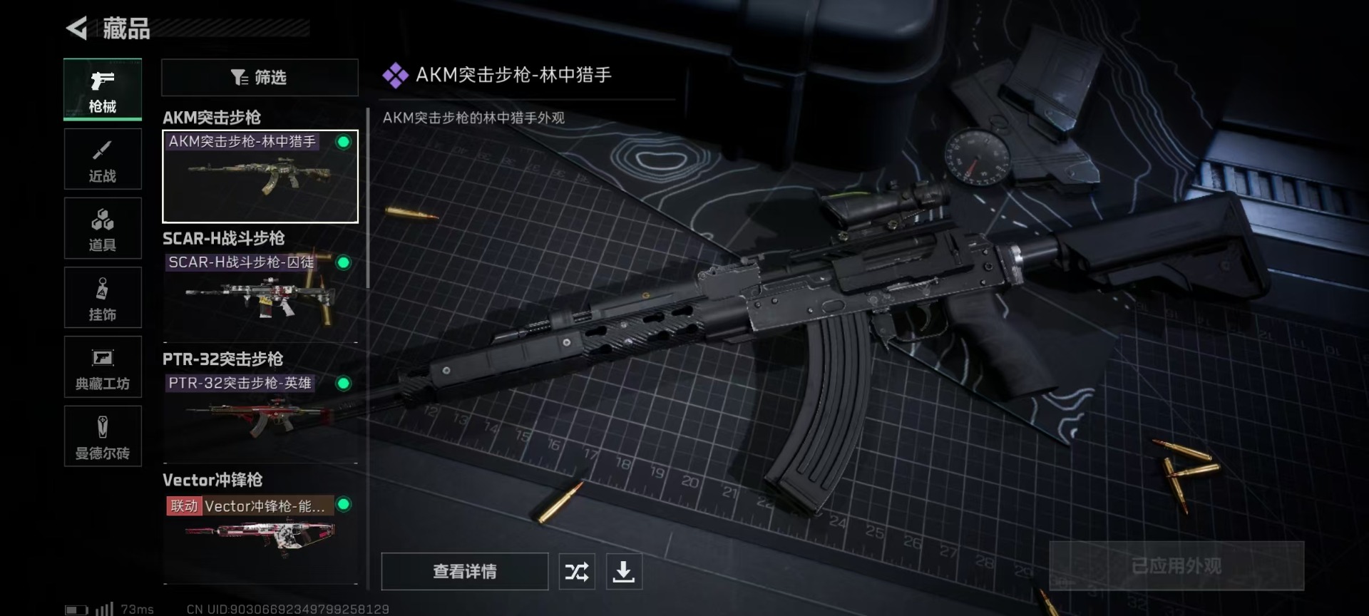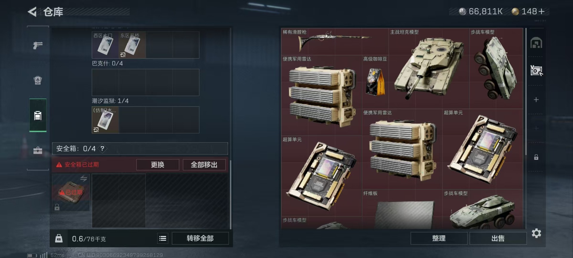 - [11529809]总资产:133.4M 9传说枪械 哈夫币:88.371K 进阶安全箱(2×2)9.15号到期 可二次 可修改实名 烽火地带段位:黑鹰 全面战场段位:无段位 传说武器皮肤:Vector冲锋枪-狩猎时刻,G3战斗步枪-狩猎时刻,M16A4突击步枪-狩猎时刻,AK-12突击步枪-特斯拉线圈,CAR-15突击步枪-阿米娅,SR-3M紧凑突击步枪-特斯拉线圈,UZI冲锋枪-特斯拉线圈,勇士冲锋枪-能天使-午夜邮差,复合弓-黑-天际线