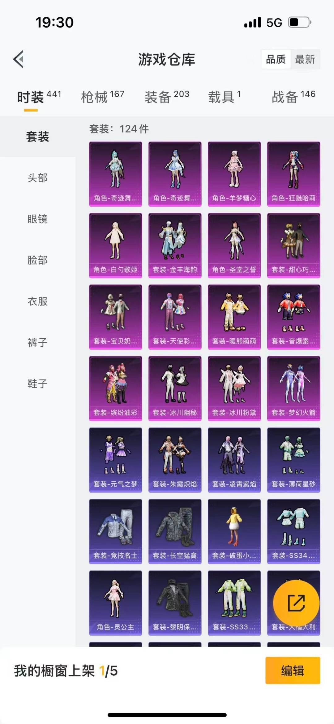 套装-鹰眼刺客,套装-宝贝奶油派,套装-天使彩虹糖,套装-梦幻火箭,套装-缤纷油彩,套装-暖熊萌萌,套装-冰川粉黛,套装-音爆索尼克,角色-白勺歌姬,角色-圣堂之誓,套装-金丰海韵,套装-冰川幽秘