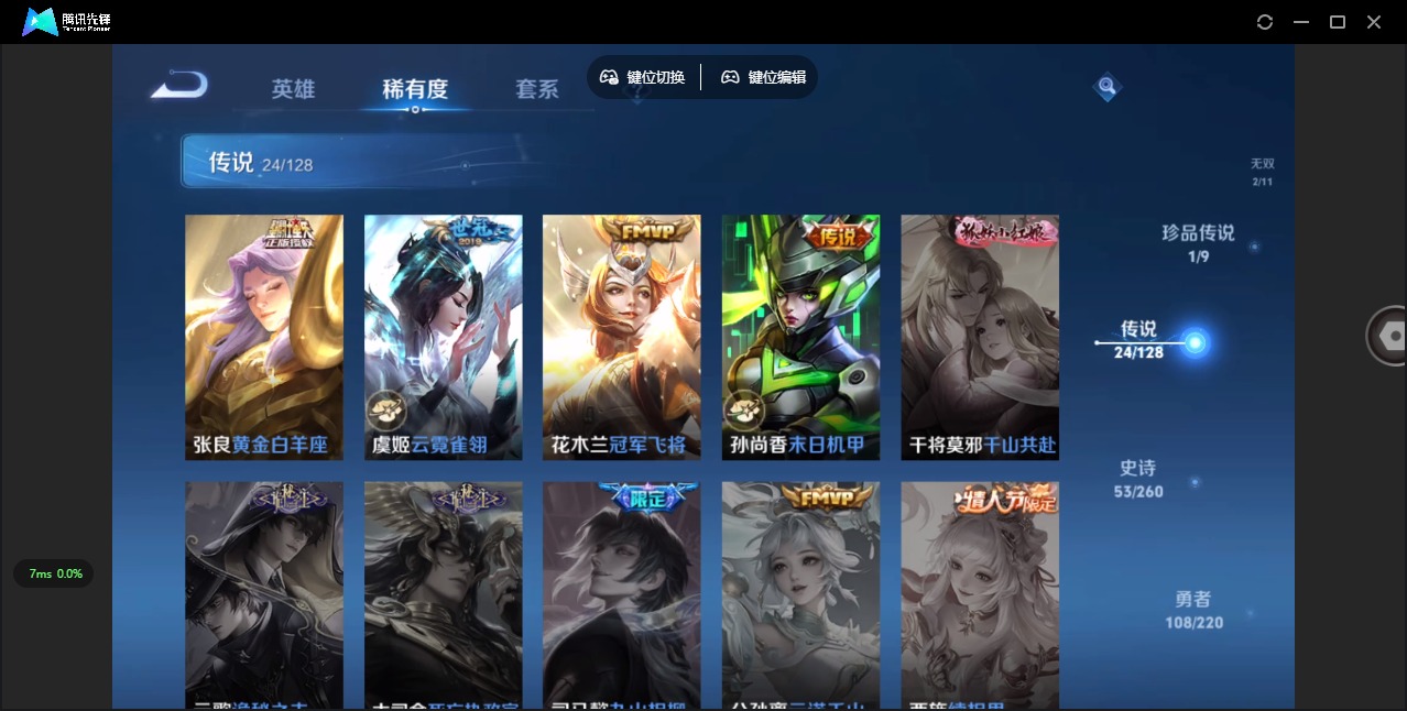 - [12073946]V7 1典藏 15传说 122英雄 202皮肤 可修改实名 优质装备:弑枪猎影(韩信典藏),黄金射手座,云鹰飞将(小将军),炽阳神光,一念神魔,地狱火,仲夏夜之梦(大飞蛾),地狱之眼,时之恋人-刘备(电焊工),无双飞将,音你闪耀(rap皮),澜逐花归海,涂山容容 传说皮:云诺千山 珍宝阁皮:妄想食味,蔷薇恋人 限定皮:愿照·九州拓(澜年限),愿照·山河定(司空震年限),鸣野蒿,至尊宝,白晶晶,高山流水,五谷丰年,李小龙,冰霜恋舞曲 史诗皮:器灵·浮梦炉,化蝶舞,灵蛊蚀心,星界战将,龙之律动,石田雨龙,怒海争锋,破空之剑,东方月初,芈月浮光幕影,上官婉儿群星魔术团,百相守梦-百里守约,星界特工,百相守梦-黄忠,紫霞仙子,永昼,江河有灵,百解令(蒙犽),高渐离燃音魔法,蒙恬荣光圣徽,无限星赏官,末日机甲-吕布,猫狗日记-孙策,时之恋人-孙尚香,节奏热浪,水果甜心,天才门将,星夜王子,功夫厨神,德古拉伯爵,暗隐猎兽者,幽灵船长,鬼剑武藏,暗渊魔法,心灵战警,舞动绿茵,地狱岩魂,乘风破浪,水晶猎龙者,曙光守护者,箭羽风息,金属风暴,原初追逐者,圣诞狂欢,鹰眼统帅,魅力维加斯,黎明之约,未来纪元-赵云