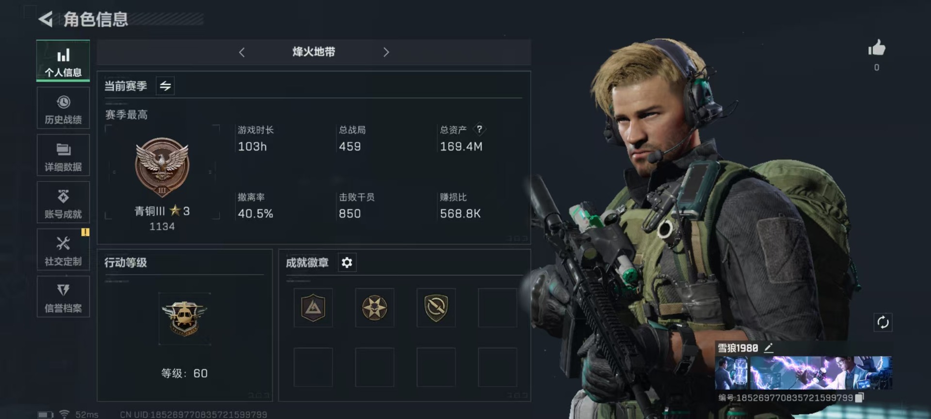 [12296436]总资产:169.4M 7传说枪械 哈夫币:92.497K 进阶安全箱(2×2)9.15号到期 可二次 可修改实名 烽火地带段位:青铜 全面战场段位:列兵 传说武器皮肤:M4A1突击步枪-阿米娅,CAR-15突击步枪-阿米娅,复合弓-黑-天际线,AK-12突击步枪-特斯拉线圈,SR-3M紧凑突击步枪-特斯拉线圈,UZI冲锋枪-特斯拉线圈,勇士冲锋枪-能天使-午夜邮差 史诗武器皮肤:SV-98狙击步枪-囚徒,M700狙击步枪-竞技风