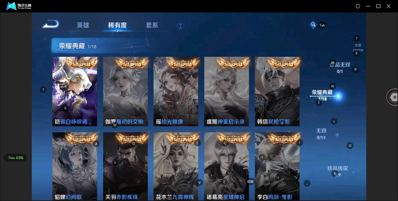 - [11604916]V7 1典藏 1珍品传说 10传说 124英雄 204皮肤 可修改实名 优质装备:神鉴启示录,怪盗基德,云鹰飞将(小将军),久胜战神,炽阳神光,地狱之眼,山海·炽霜斩(李信年限) 传说皮:幻光神枪 珍宝阁皮:妄想食味 限定皮:愿照·九州拓(澜年限),愿照·岁时盈(虞姬年限),愿照·千秋盛(女娲年限),逐霄战戟,傲雪梅枪,遇见飞天,高山流水,诗剑行,五谷丰年,山海·玄木吟(马可年限) 史诗皮:鸭鸭历险记-刘禅,器灵·浮梦炉,化蝶舞,龙之律动,茶境仙,东方月初,百相守梦-百里守约,紫霞仙子,黄金分割率,电玩·爆裂旋风,江河有灵,百解令(蒙犽),高渐离燃音魔法,蒙恬荣光圣徽,偶像歌手,冰冠公主,末日机甲-吕布,猫狗日记-大乔,节奏热浪,修罗,女仆咖啡,水果甜心,绅士熊喵,天才门将,星夜王子,功夫厨神,暗隐猎兽者,幽灵船长,鬼剑武藏,心灵战警,地狱岩魂,拒霜思,乘风破浪,逐浪之夏,水晶猎龙者,曙光守护者,金属风暴,原初追逐者,圣诞狂欢,圣诞恋歌,鹰眼统帅,赏金猎手,未来纪元-赵云