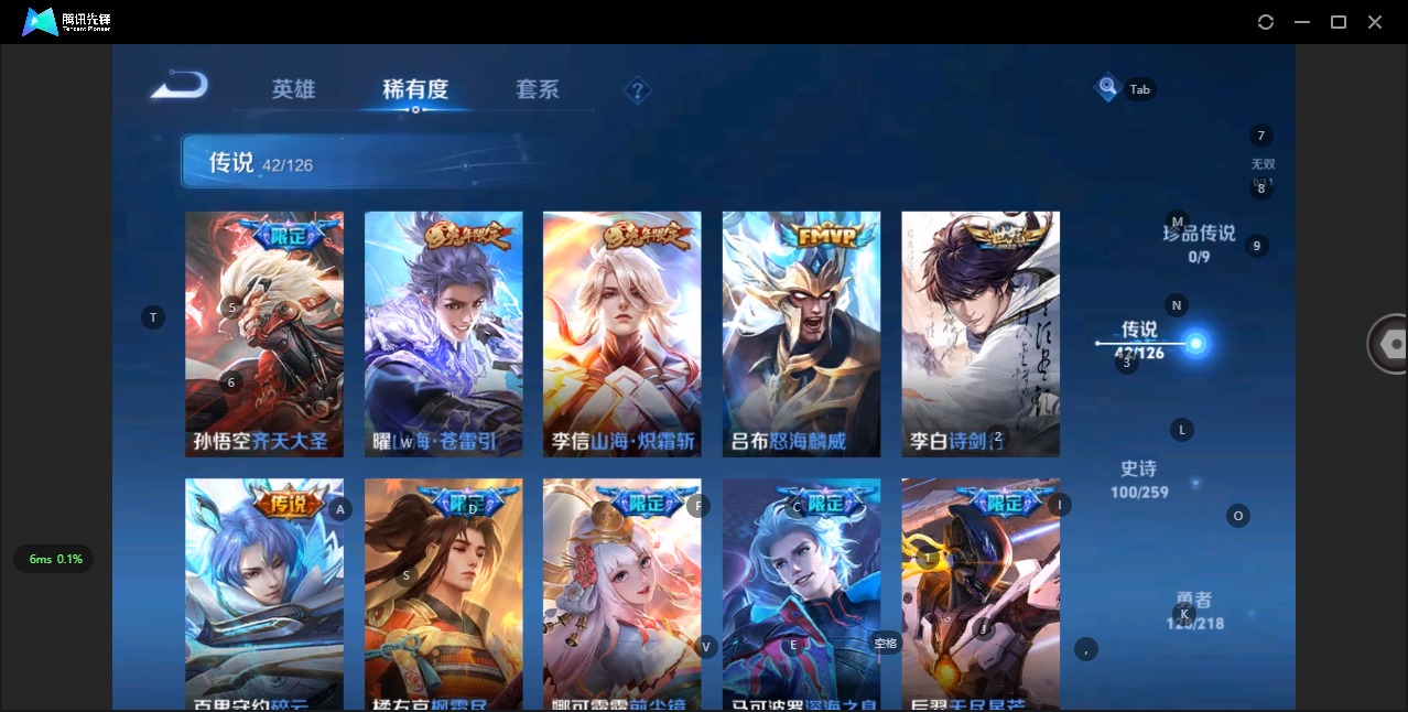 - [12116534]V7 1无双 12传说 125英雄 296皮肤 可修改实名 女号 优质装备:青丘·九尾(妲己无双),黄金狮子座,黄金射手座,绛天战甲(鸡嘴战神),久胜战神,炽阳神光,零号·赤焰,超时空战士-狄仁杰,山海·炽霜斩(李信年限),青丘·九尾,涂山容容 珍宝阁皮:妄想食味,胡桃夹子,女武神,玩趣恶龙 限定皮:愿照·九州拓(澜年限),鸣野蒿,至尊宝,傲雪梅枪,高山流水,齐天大圣,怒海麟威,五谷丰年,冰锋战神,梁祝,李小龙,逐梦之影,孙行者,猪悟能,大圣娶亲,百木心枪,山海·玄木吟(马可年限) 史诗皮:鸭鸭历险记-刘禅,星界战将,百相守梦-周瑜,蒙犽顽岩魄,百相守梦-黄忠,织梦人,紫霞仙子,黄金分割率,特工魅影,千年之狐,江河有灵,魅语,百解令(蒙犽),蒙恬荣光圣徽,末日机甲-吕布,猫狗日记-孙策,时之恋人-孙尚香,乱世虎臣,节奏热浪,修罗,女仆咖啡,摇滚巨星,水果甜心,绅士熊喵,天才门将,星夜王子,心灵骇客,功夫厨神,德古拉伯爵,暗隐猎兽者,幽灵船长,鬼剑武藏,暗渊魔法,心灵战警,天秀·启明,舞动绿茵,地狱岩魂,纤云弄巧,繁星吟游(呼啦呼啦),乘风破浪,逐浪之夏,水晶猎龙者,曙光守护者,热力回旋,箭羽风息,金属风暴,原初追逐者,圣诞狂欢,圣诞恋歌,鹰眼统帅,魅力维加斯,黎明之约,无心