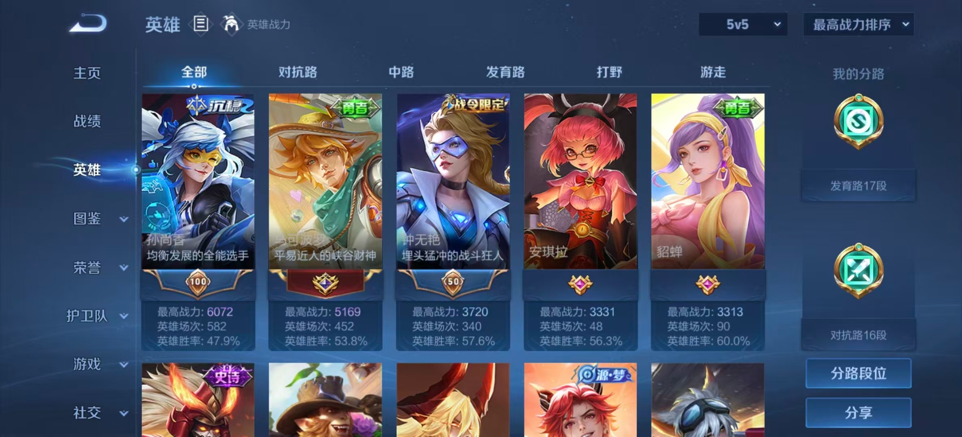 - [11320012]V7 6传说 107英雄 104皮肤 可修改实名 优质装备:冠军飞将,末日机甲-孙尚香(绿蚂蚱),地狱火,仲夏夜之梦(大飞蛾),地狱之眼 限定皮:凤求凰(白切鸡),冰锋战神,逐梦之光,辉光之辰 史诗皮:紫霞仙子,黄金分割率,特工魅影,千年之狐,末日机甲-吕布,节奏热浪,德古拉伯爵,幽灵船长,水晶猎龙者,鹰眼统帅,魅力维加斯
