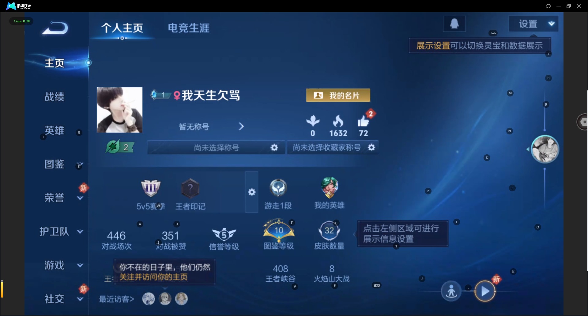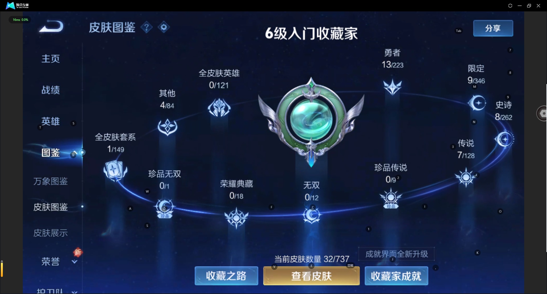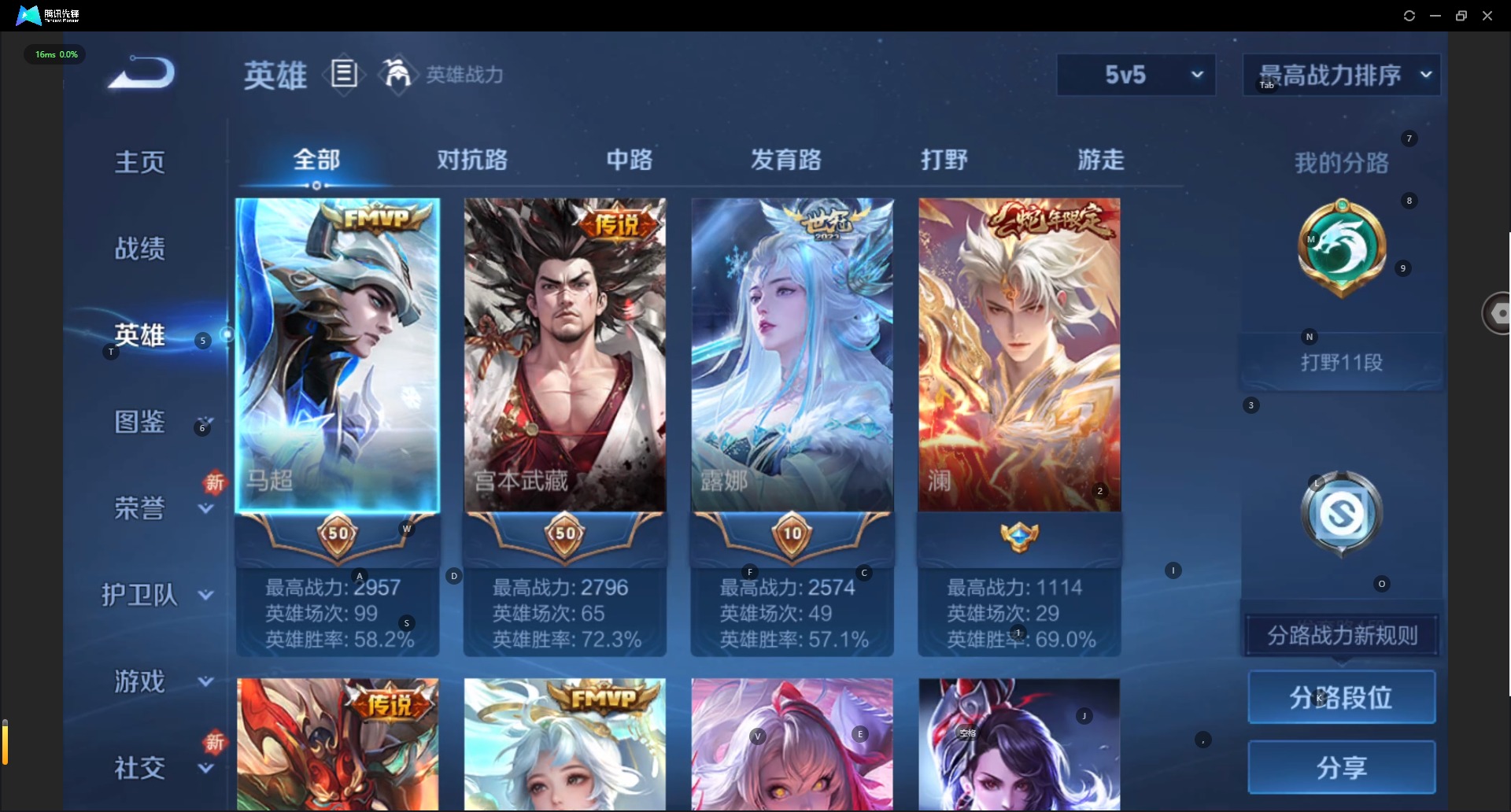 - PX_2057213-贵族等级: V5 英雄数: 47 皮肤数: 30 传说皮: 超时空战士-狄仁杰,云诺千山 限定皮: 鸣野蒿,愿照·山河定