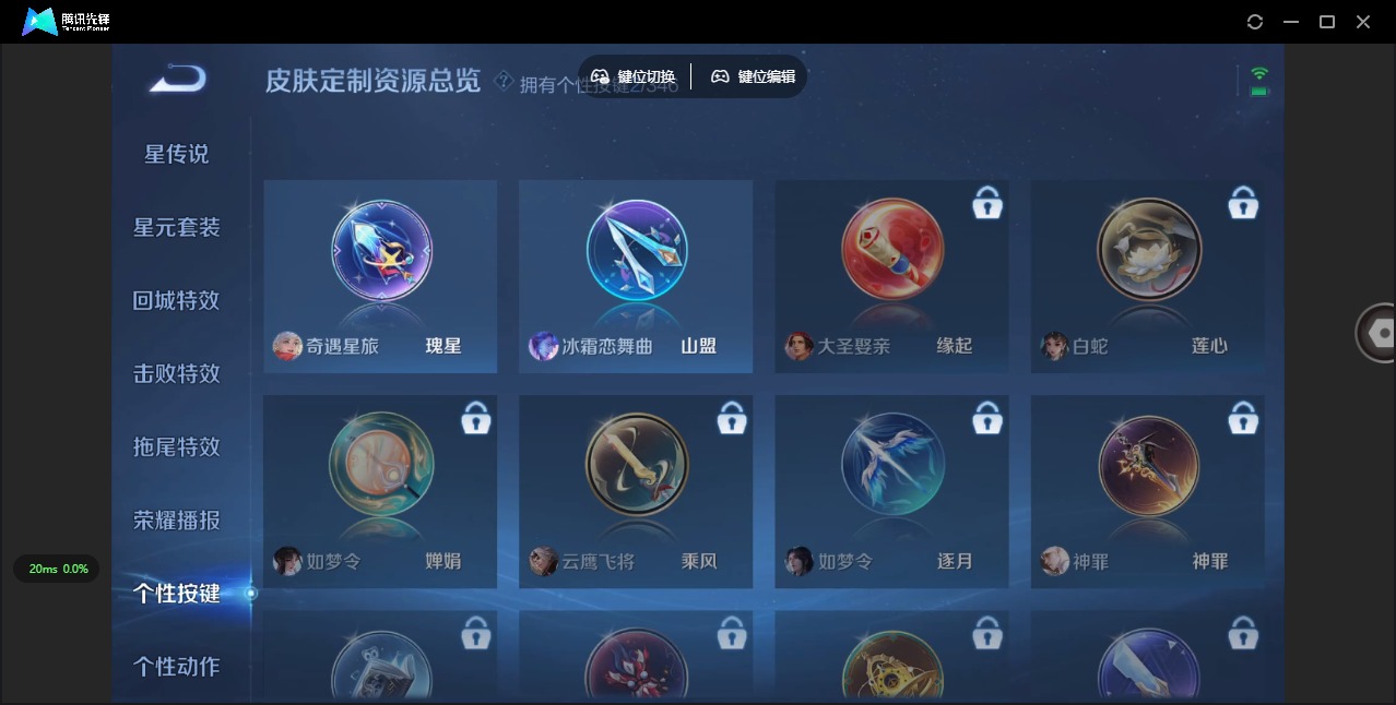 大乔猫狗日记,刘邦德古拉伯爵,曹操幽灵船长,小乔缤纷独角兽,露娜紫霞仙子,刘禅电玩·爆裂旋风,刘禅绅士熊喵,宫本武藏鬼剑武藏,花木兰水晶猎龙者,李白千年之狐,安琪拉心灵骇客,安琪拉时之奇旅,白起星夜王子,亚瑟心灵战警,桑启奇遇星旅,雅典娜冰冠公主,韩信白龙吟,墨子龙骑士,嫦娥拒霜思
