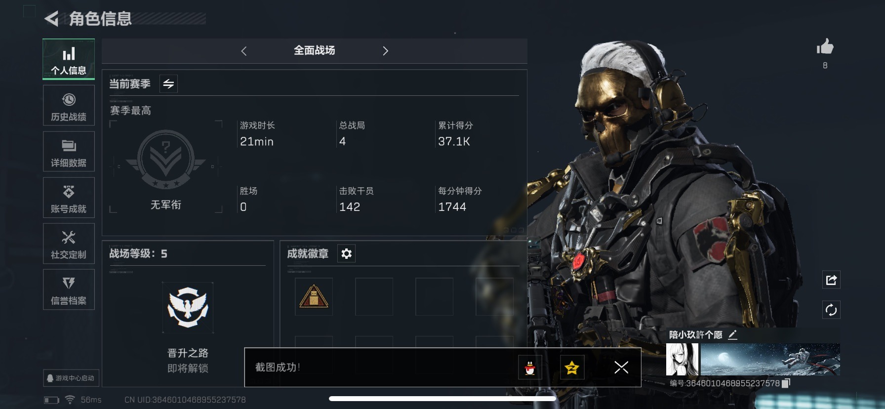 - [11820154]总资产:250.1M 1干员外观 16传说枪械 哈夫币:9.713K 顶级安全箱(3×3)9.15号到期 可二次 可修改实名 优质装备:顶级安全箱(3x3) 烽火地带段位:钻石 全面战场段位:校官 传说武器皮肤:SR-25射手步枪-水墨云图,AS Val突击步枪-蛇年祥瑞,SCAR-H战斗步枪-铁艺苍穹,UZI冲锋枪-特斯拉线圈,AWM狙击步枪-捞点薯条,腾龙突击步枪-捞点薯条,93R-捞点薯条,AK-12突击步枪-特斯拉线圈,SR-3M紧凑突击步枪-特斯拉线圈,勇士冲锋枪-能天使-午夜邮差,复合弓-黑-天际线,725双管霰弹枪-送葬人-无题密令,M4A1突击步枪-阿米娅,CAR-15突击步枪-阿米娅,AK-12突击步枪-夜鹰,M7战斗步枪-神秘艺术 史诗武器皮肤:K416突击步枪-潜袭者,勇士冲锋枪-私人定制(典藏),SR-3M紧凑突击步枪-英雄,QBZ95-1突击步枪-ACE,AUG突击步枪-特勤执行,M4A1突击步枪-特勤执行,Vector冲锋枪-红色彗星,PTR-32战斗步枪-ACE,SKS射手步枪-ACE,AUG突击步枪-蝮蛇,M700狙击步枪-蝮蛇,PKM通用机枪-蝮蛇,SR-25射手步枪-战场英杰,G3战斗步枪-战场英杰,M16A4突击步枪-竞赛选手,MP5冲锋枪-深海恐惧,勇士冲锋枪-深海恐惧,SG552突击步枪-深海恐惧,AKM突击步枪-林中猎手,QJB201轻机枪-Old Habits,SV-98狙击步枪-林中猎手,AS Val突击步枪-典狱官,PKM通用机枪-荒野求生,M250通用机枪-囚徒,SV-98狙击步枪-囚徒,SCAR-H战斗步枪-囚徒,腾龙突击步枪-无垢,MP7冲锋枪-无垢,PSG-1射手步枪-无垢,SVD狙击步枪-荒野求生,SR-3M紧凑突击步枪-荒野求生,QBZ95-1突击步枪-曙光,沙漠之鹰-曙光,Vector冲锋枪-阿萨拉文明,SVD狙击步枪-阿萨拉工艺,S12K霰弹枪-曙光,PKM通用机枪-英雄,M700狙击步枪-竞技风,QSZ92G-风林火山,93R-博士,PTR-32突击步枪-Old Habits 干员外观:蜂医-送葬人·无题密令(S5)