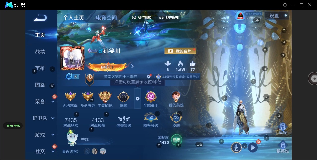 - [11898936]V8 1典藏 9传说 112英雄 150皮肤 可修改实名 优质装备:杀手不太冷,黄金射手座,冠军飞将,炽阳神光,仲夏夜之梦(大飞蛾),超时空战士-狄仁杰 珍宝阁皮:蔷薇恋人 限定皮:凤求凰(白切鸡),白晶晶,时雨天司(水龙头),神威(电光马子),五谷丰年,御风骁将(吕布年限),祈雪灵祝(雪兔子),默契交锋-花木兰,一生所爱,冰霜恋舞曲 史诗皮:紫霞仙子,黄金分割率,特工魅影,千年之狐,魅语,偶像歌手,晚萤,暗夜猫娘,乱世虎臣,修罗,水果甜心,功夫厨神,德古拉伯爵,暗隐猎兽者,鬼剑武藏,舞动绿茵,乘风破浪,逐浪之夏,水晶猎龙者,原初追逐者,鹰眼统帅,黎明之约