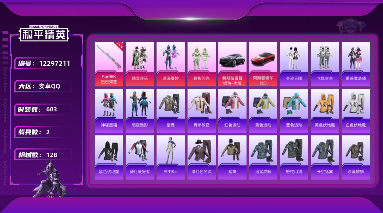 - PX_2088313- 可二次 安卓手Q-2王牌印记-14粉装-3特效枪-2载具-93159热力值-234套装-245枪皮-0卓越印记-0传奇印记, 【14粉装】,新星烈龙,极致幻想,深渊皇后,精灵迷巫,华贵君王,甜蜜誓约,王牌四分卫,潮汐统领,天禅智恒,向日葵,心之恋语,桀骜红莲,金风玉露,蜜桃特工, 【3特效枪】,M416-心之恋语-6级,M762-甜蜜誓约-7级,Kar98K-伏魔团-5级,