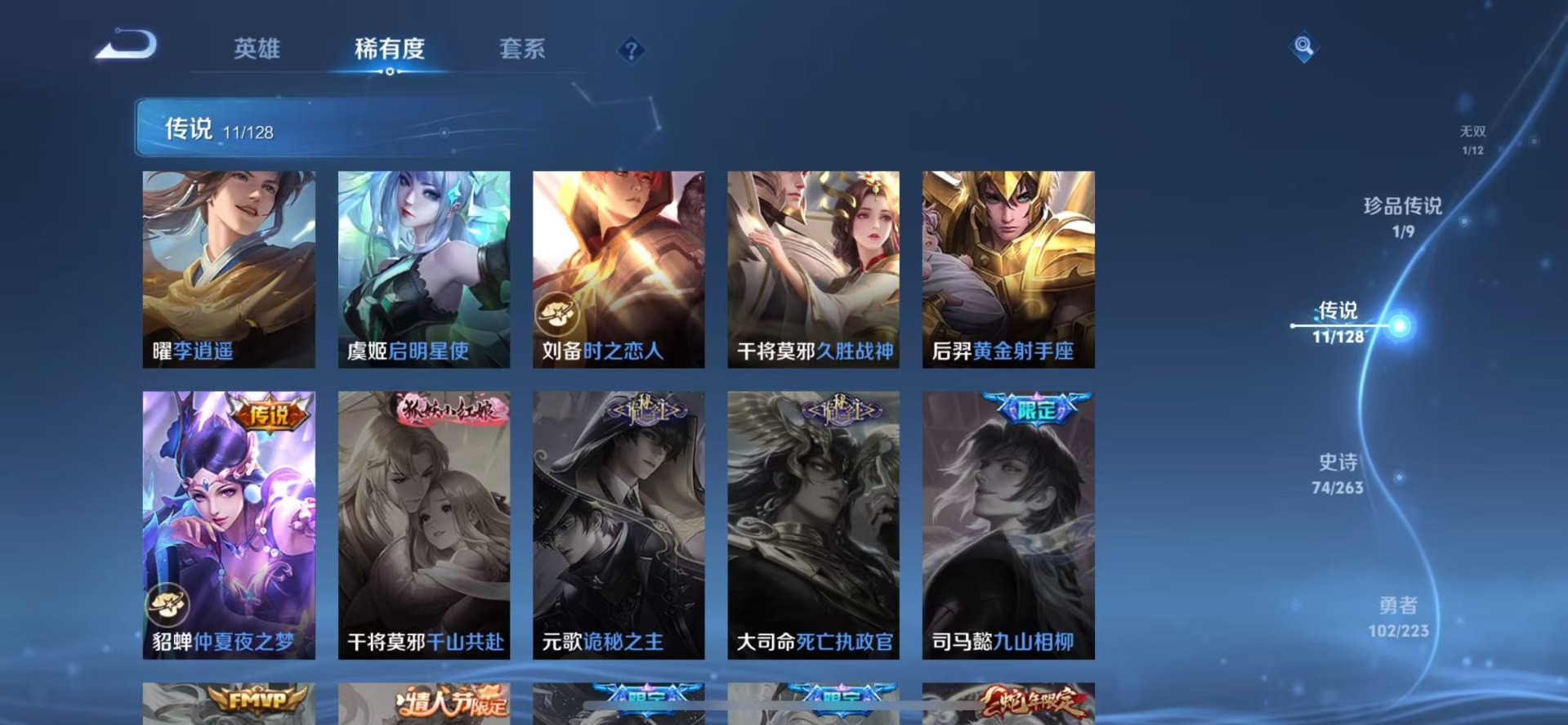 - [11818297]V10 3典藏 2无双 5珍品传说 46传说 126英雄 499皮肤 典藏英雄武则天 可修改实名 优质装备:杀手不太冷,鸣剑·曳影,韩信群星魔术团(韩信无双),器灵·螭龙剑,最初的交响(伽罗典藏),江户川柯南,怪盗基德,器灵·落星盏,朽木白哉,黑崎一护,云鹰飞将(小将军),黄金白羊座,炽阳神光,云霓雀翎,地狱火,仲夏夜之梦(大飞蛾),零号·赤焰,海洋之心,地狱之眼,胖达荣荣,乞巧织情,超时空战士-狄仁杰,末日机甲-孙策,炽翼辉光(娃娃菜牛角包),燃星之曲,浮生妄,鹤羽星尊,灼幽烈阳,妄想实况,妄想奇谈,鹤归松栖(云缨),霜月吟,澜逐花归海,艾琳觅芳踪,云中君群星魔术团,朵莉亚心动手记,千劫归真,涂山容容 传说皮:星之鸣奏,幻光神枪 珍宝阁皮:妄想食味,优雅恋人,蔷薇恋人 限定皮:愿照·九州拓(澜年限),愿照·福禄聚(蔡文姬年限),愿照·岁时盈(虞姬年限),愿照·山河定(司空震年限),愿照·众生和(妲己年限),愿照·千秋盛(女娲年限),逐霄战戟,陌上桑,鸣野蒿,夏侯惇霜北刀,至尊宝,凤求凰(白切鸡),凤凰于飞,武陵仙君(小桃花),傲雪梅枪,星穹之声,魔法小厨娘,白晶晶,神威(电光马子),飞衡(韩信年限),遇见飞天,高山流水,诗剑行,齐天大圣,降魔,五谷丰年,冰锋战神,天狼运算者,梁祝,逐梦之翼,逐梦之星,天狼溯光者,逐梦之音,祈雪灵祝(雪兔子),天狼绘梦者,李小龙,逐梦之影,霸王别姬-项羽,孙行者,猪悟能,一生所爱,大圣娶亲,引擎之心,天魔缭乱,青春决赛季,冰霜恋舞曲,云端筑梦师,蜜橘之夏,神奇女侠,美猴王,匿光追影者,女儿国国王,寅虎·御盾(廉颇年限),寅虎·心曲(虎婆),时之祈愿-云中君,百木心枪,启示之音,神器·万象笔,梦圆繁星,山海·玄木吟(马可年限),冰霜神祇 史诗皮:鸭鸭历险记-刘禅,器灵·浮梦炉,糖绘人间,狼魂孤将,绮世丹青,化蝶舞,灵蛊蚀心,星界战将,谪仙醉月,龙之律动,雪豹·霜爪,藏狐·褐绒,布丁狗之誓,石田雨龙,百相守梦-周瑜,戍鼓铭心,茶境仙,怒海争锋,炽弈燎原,破空之剑,战舞者,涂山红红,东方月初,蒙犽顽岩魄,埋骨钱,芈月浮光幕影,海诺心动手记,琥珀纪元伽罗,决胜骁骑,上官婉儿群星魔术团,蔬乡物语(鲁班七号),百相守梦-百里守约,百相守梦-黄忠,遇见神鹿,紫霞仙子,苍穹之光,电玩小子(小书包),白龙吟,黄金分割率,特工魅影,千年之狐,永昼