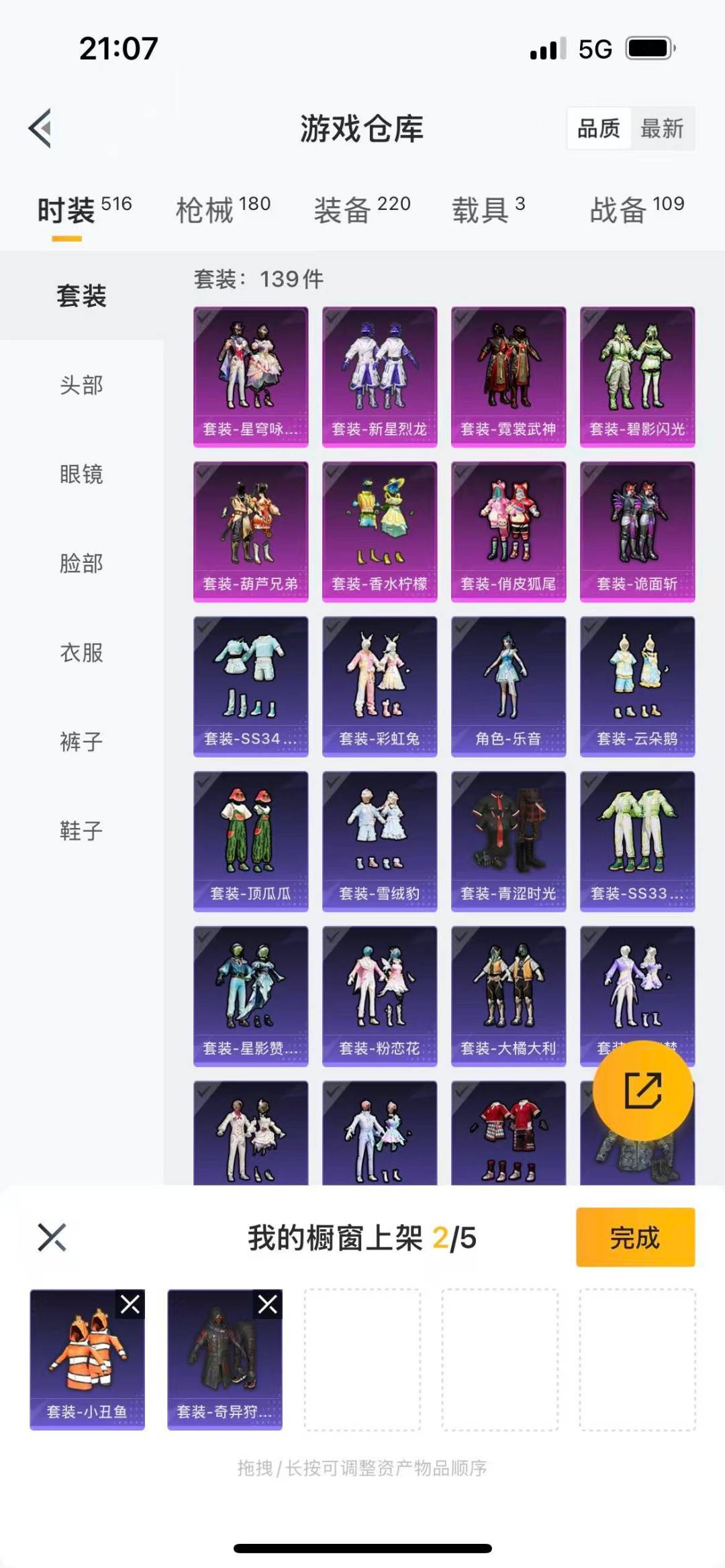 [12297274]8粉装 4特效枪 3载具 7印记 可二次 可修改实名 优质装备:僚机-圣域龙宝,阿斯顿·马丁DBX(橙),特斯拉Roadster(沁心粉),兰博基尼Aventador SVJ(翡翠绿),奇异狩猎者,香水柠檬,诡面斩,Groza香水柠檬,新星烈龙(小白龙),俏皮狐尾,AKM梦之光华,M416风花雪月,七级AKM-梦之光华,七级GROZA-香水柠檬,星穹咏叹调,MK14-甜梦熊击 热门装扮:葫芦兄弟,碧影闪光,霓裳武神,神秘黑猫,暗夜魅影 五级特效枪:五级MK14-甜梦熊击,五级M416-风花雪月 紫色装扮:SS22特训,SS23特训,幻彩翩翩,妙红点点,娇憨猪猪,萌趣咩咩,SS21特训,冰川特警,冷焰舞者,北国孤狼,千禧之恋,云朵鹅,彩虹兔,雪绒豹,SS33特训套装,青涩时光,顶瓜瓜,乐音,SS20特训,赛罗奥特曼,青春冒险家,光影梦想家,潮流游乐家,SS15特训,艾克斯奥特曼,时空追击者,暴风机械师,SS16特训,冰爽风暴,冰爽海盐,闪金天王,银白舞王,SS13特训,超能拳王,浪漫樱花,治愈之星,迅捷之星,科技之星,SS14特训,萌趣颜团子,特种颜团子,猎梦纪元,飞驰魅影,音速流光,极速竞梦,SS19特训,吉莉礼服,甜心亚梦,虚音幻奏,电音精灵,瑞龙福将,团圆交子,SS17特训,极乐追光,SS18特训,酷潮明星,长空猛禽,雪山精英,霓虹极客,迎春赐吉,风暴特警,耀眼新星,虎虎生威吉莉,飞行日记,骑行爱好者,魅力单车,龟仙人,极地朋克,柠萌假日,格斗先锋,沙漠兵团,海滨突袭者,清新柠檬,幻世战舞者,怒火燎原,探宝勇士,白色伏地魔,破蛋小黄鸡,神秘领域,福星高照,竞技勇士朋克,竞技达人朋克,甜蜜熊情侣,牛气冲天,灼焰舞者,炫蓝之夏,燃烧卡路里,牛气满满,猛禽,特战装甲,猎鹰,镭射皇者,静谧青瓷,竞技名士,甜梦熊熊,神气柴柴,懵萌河马,SS24特训(SS24特训套装),绚紫流光,SS25特训,小丑鱼,萌主吾皇,SS8特训,大橘大利,星渊小夜曲,星影赞美诗,原初圣火,逆风勇士,SS12特训,韶华初心,隐空刺,影双刃,薄荷蓝莓,辉星之火,暗夜契约,耀粉歌者,粉恋花,蓝冰羽,紫幽梦,SS32特训服(SS32特训套装),绯格组合,萌黄之夏,金耀舞者,蓝调潮人,贵族骑装,海上生明月 优质战备:金丰海韵降落伞,终晖之翼飞行器,冷漠罗丽降落伞,圣域龙灵降落伞,圣域金龙飞行器,天星