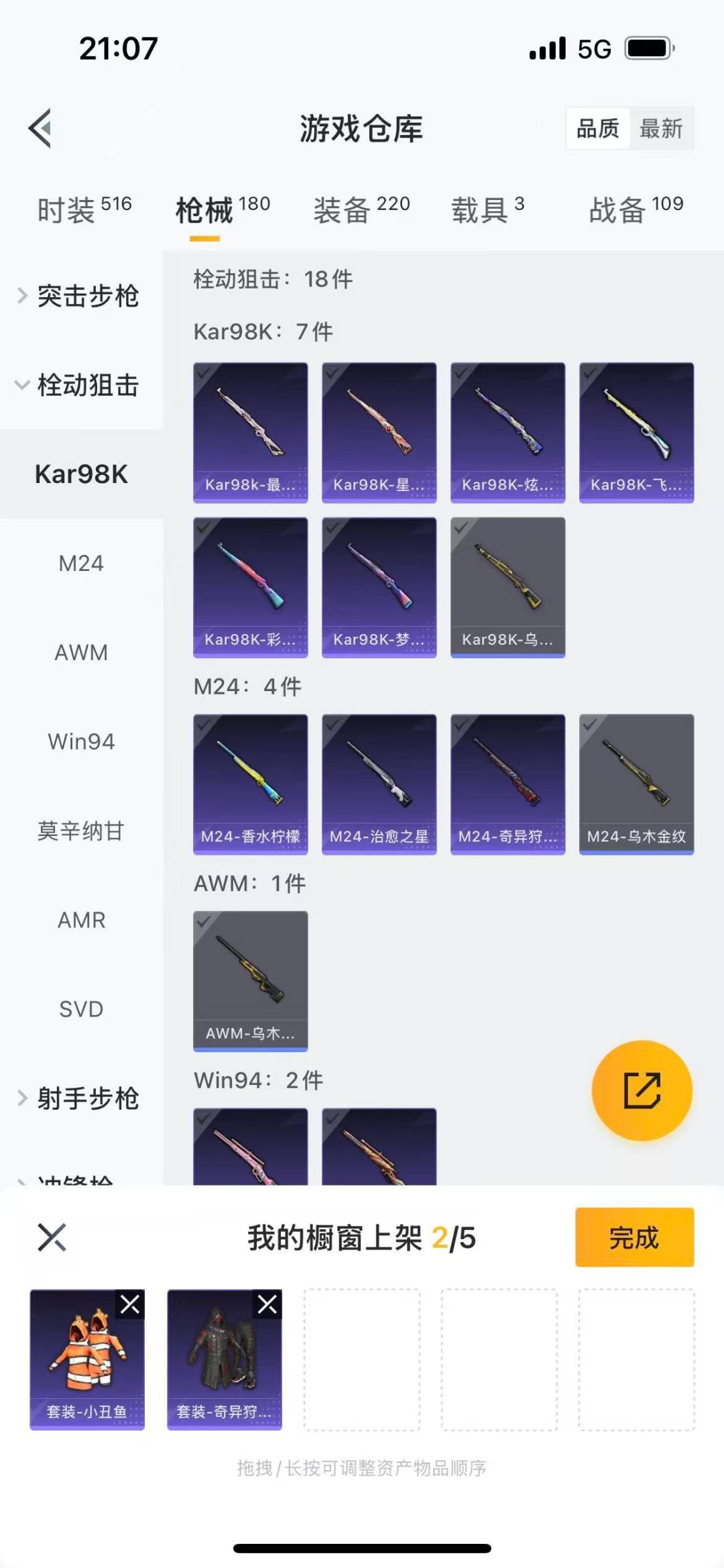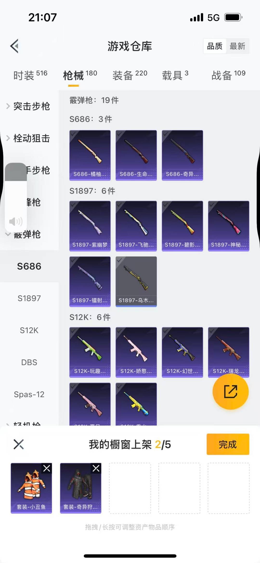 AKM-奇异狩猎者,M762-瑞龙福将,M24-奇异狩猎者,M24-香水柠檬,S686-奇异狩猎者