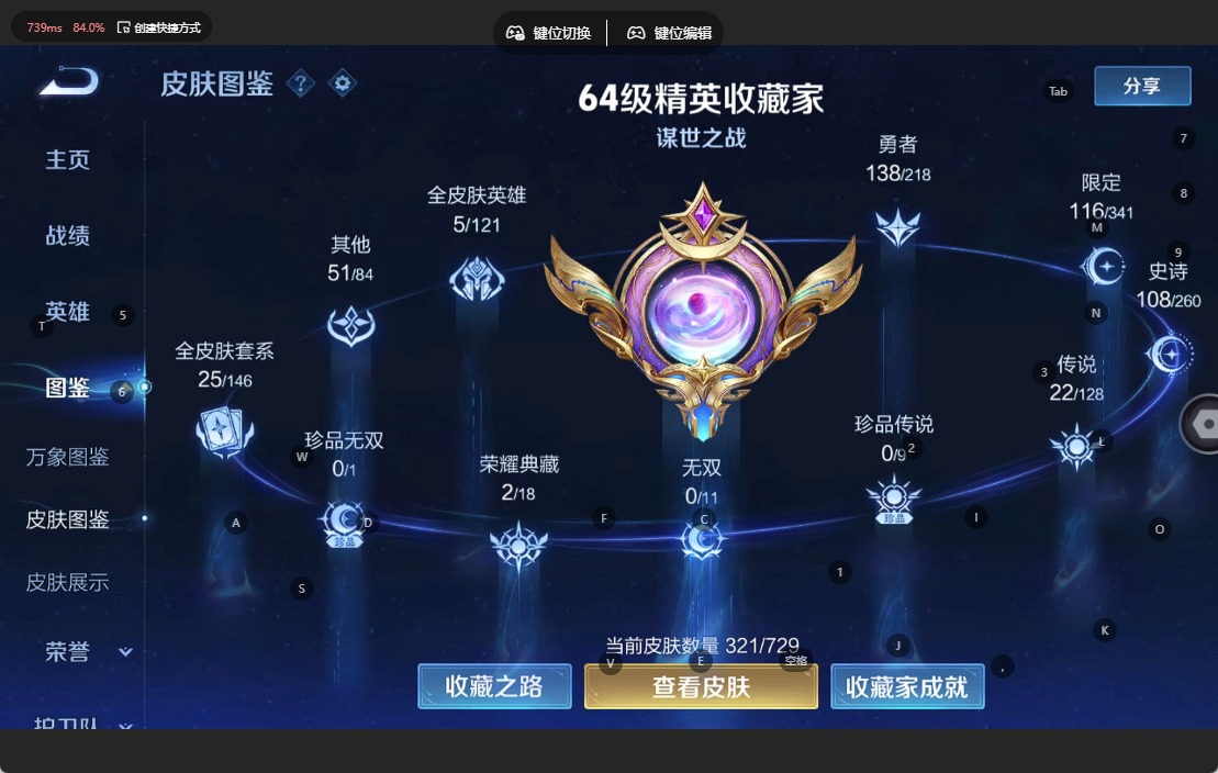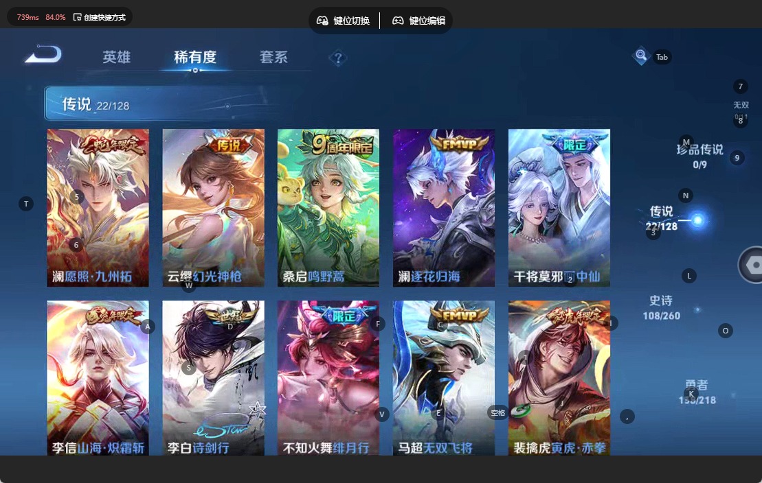 - PX_2108094-Q/至尊星耀/263皮肤/124英雄/2典藏/0珍品无双/0无双/2珍品传说/16传说/86史诗/8稀有英雄 【2 珍品传说】朽木白哉 暃,器灵·落星盏 嫦娥, 【2 典藏皮肤】鸣剑·曳影 李白,神鉴启示录 虞姬, 【16 传说皮肤】启明星使 虞姬,无双飞将 马超,李逍遥 曜,云鹰飞将 曜,夜礼服假面 狄仁杰,神器·狴犴令 狄仁杰,记忆之芯 公孙离,时雨天司 诸葛亮,炽阳神