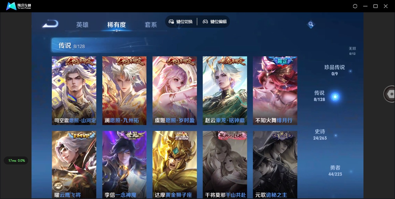 - [11471732]V7 1典藏 10传说 124英雄 222皮肤 可修改实名 优质装备:弑枪猎影(韩信典藏),久胜战神,一念神魔,云霓雀翎,地狱火,仲夏夜之梦(大飞蛾),零号·赤焰,无双飞将 传说皮:九山相柳 珍宝阁皮:玩趣恶龙 限定皮:逐霄战戟,陌上桑,鸣野蒿,时雨天司(水龙头),龙胆,天狼绘梦者,李小龙,孙行者 史诗皮:鸭鸭历险记-刘禅,龙之律动,石田雨龙,百相守梦-周瑜,破空之剑,战舞者,谪仙醉月,蔬乡物语(鲁班七号),百相守梦-百里守约,炽弈燎原,百相守梦-黄忠,紫霞仙子,黄金分割率,千年之狐,真我赫兹(百里守约),偶像歌手,无限星赏官,晚萤,末日机甲-吕布,猫狗日记-孙策,时之恋人-孙尚香,乱世虎臣,节奏热浪,修罗,女仆咖啡,水果甜心,绅士熊喵,心灵骇客,功夫厨神,暗隐猎兽者,幽灵船长,鬼剑武藏,乐园奇幻夜,天秀·启明,舞动绿茵,纤云弄巧,繁星吟游(呼啦呼啦),缤纷独角兽,逐浪之夏,月团寄思,水晶猎龙者,曙光守护者,热力回旋,箭羽风息,金属风暴,圣诞狂欢,鹰眼统帅,王者之锤,无心