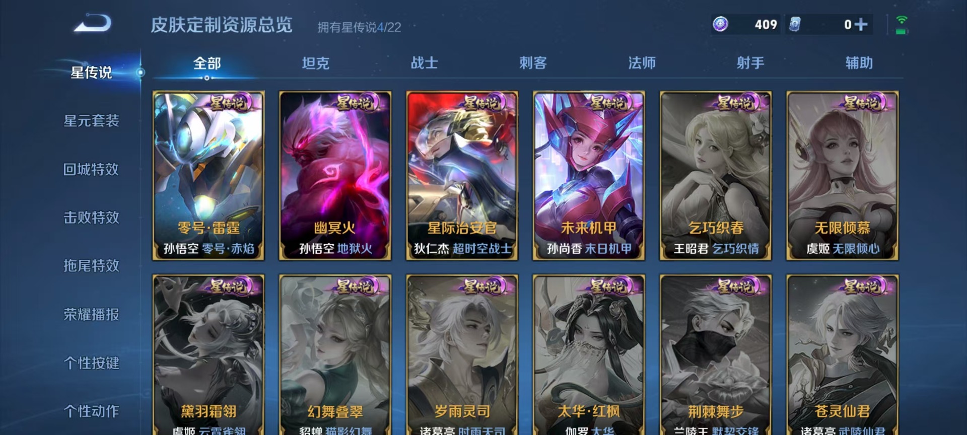 夏侯惇匿光决锋者,夏侯惇霜北刀,黄忠烈魂,盾山梦圆繁星,苏烈玄武志,孙尚香异界灵契,镜匿光追影者,杨玉环寅虎·心曲,司空震愿照·山河定,貂蝉逐梦之音,裴擒虎李小龙,裴擒虎寅虎·赤拳,上官婉儿梁祝,上官婉儿神器·万象笔,马可波罗逐梦之星,马可波罗山海·玄木吟,猪八戒猪悟能,孙悟空孙行者,孙悟空大圣娶亲,芈月白晶晶,孙悟空至尊宝,孙悟空美猴王,韩信傲雪梅枪,澜愿照·九州拓,虞姬愿照·岁时盈,嫦娥如梦令,王昭君映山客,甄姬幽恒,甄姬至美·化雀舞,铠青龙志,廉颇寅虎·御盾,张飞虎魄,赵云百木心枪,孙膑寅虎·展翼,典韦岱宗,鲁班七号乒乒小将,鲁班七号寅虎·瑞焰,吕布御风骁将,后羿如梦令,后羿辉光之辰,兰陵王影龙天霄,李白诗剑行,安琪拉魔法小厨娘,艾琳陌上桑,西施至美·乘鲤谣,桑启鸣野蒿,女娲愿照·千秋盛,赵云引擎之心,妲己时之彼端,妲己愿照·众生和,蔡文姬奇迹圣诞,蔡文姬愿照·福禄聚,瑶山海·碧波行,关羽冰锋战神