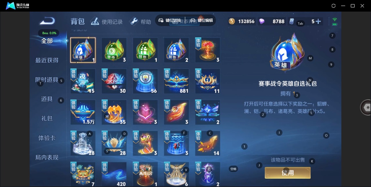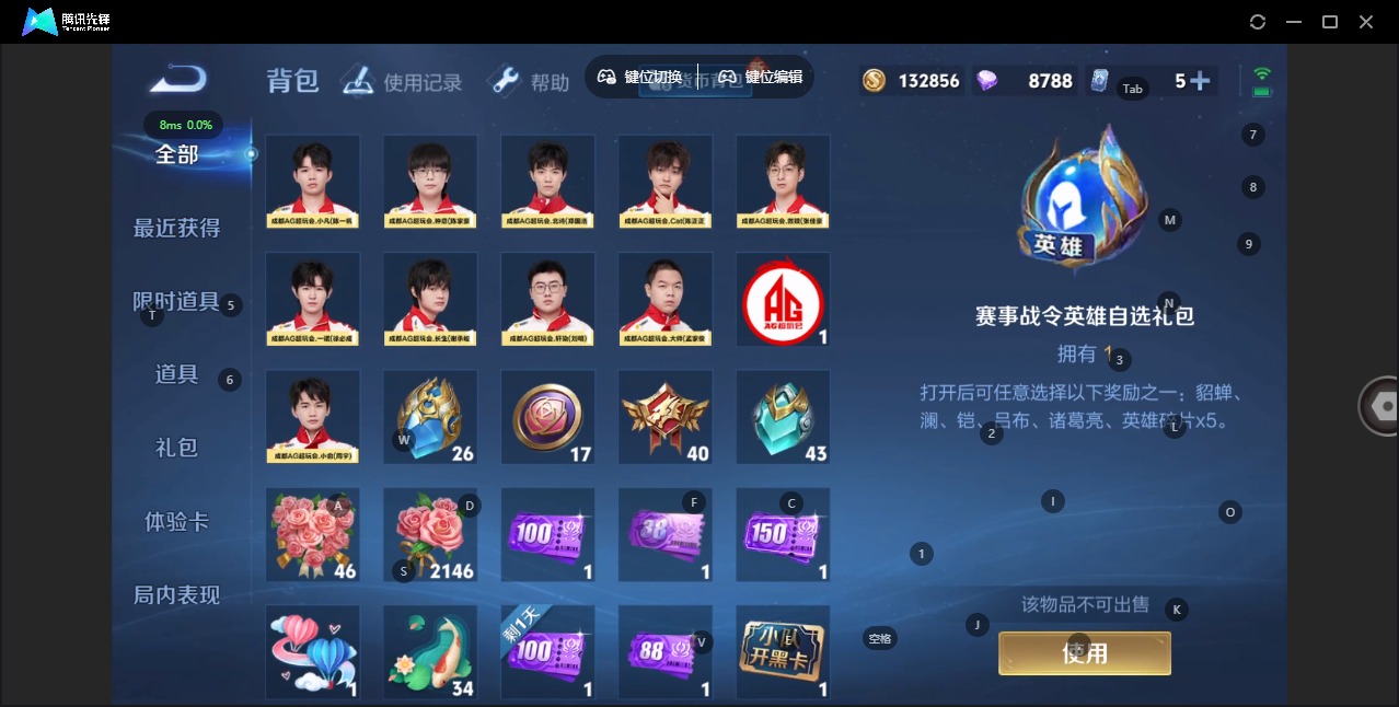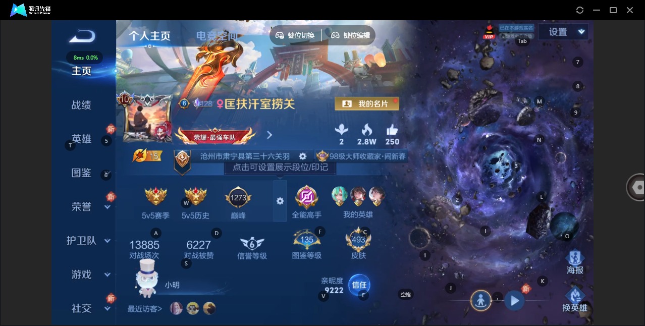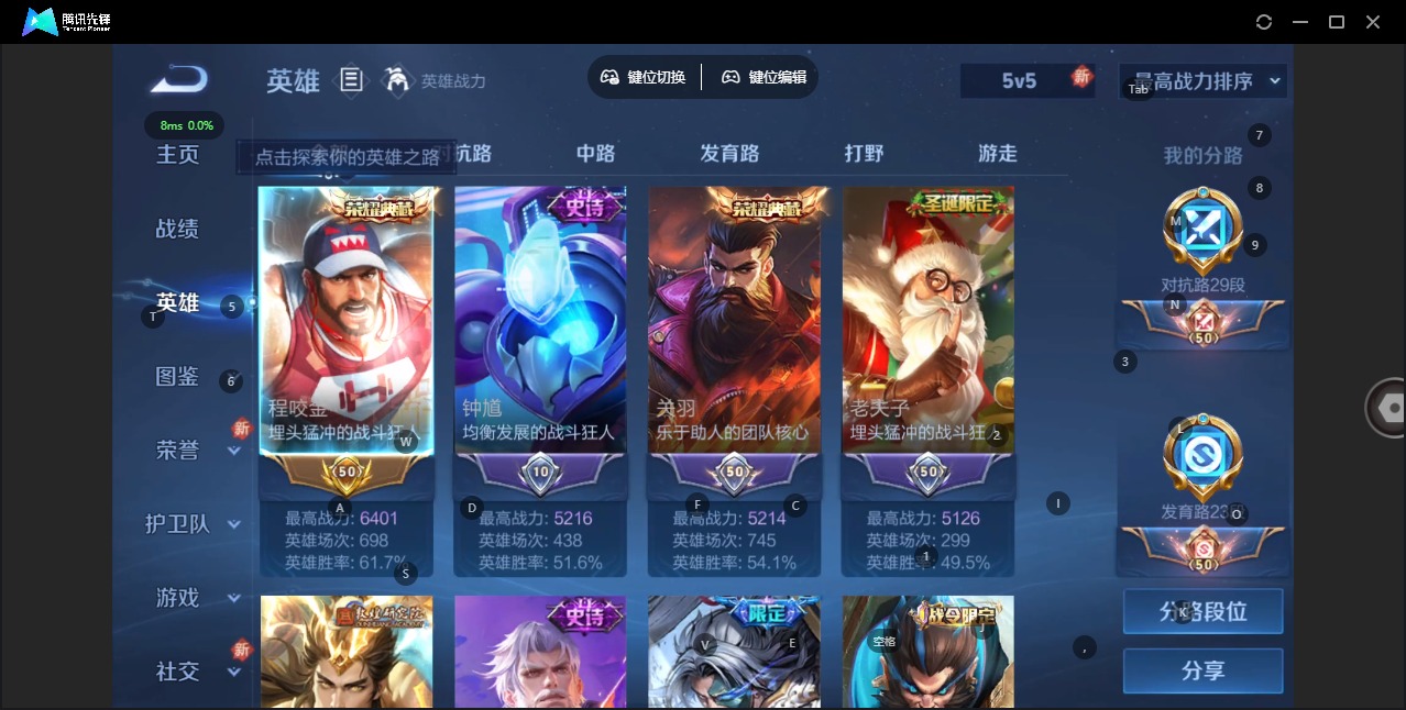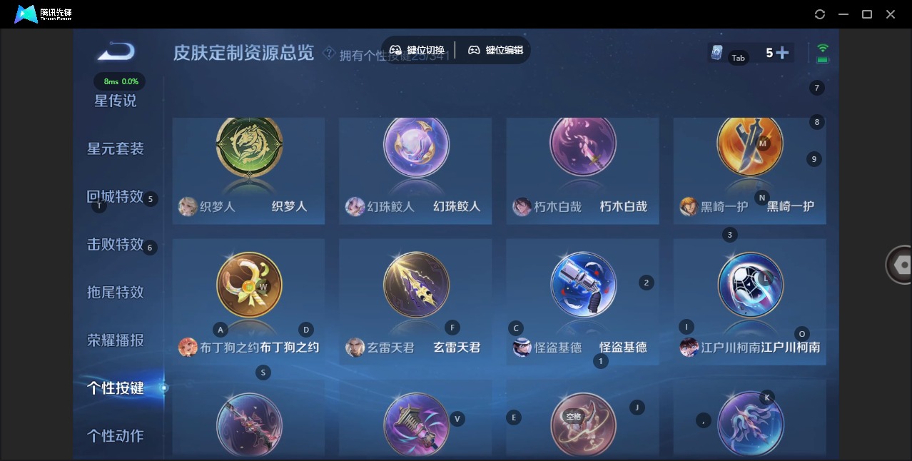 - [11252021]V8 1典藏 1无双 3珍品传说 21传说 123英雄 264皮肤 可修改实名 荣耀水晶:鸣剑·曳影 无双皮:碎月剑心(李白无双) 珍品传说:怪盗基德,朽木白哉,黑崎一护 传说皮:琥珀纪元马超,落雪白狼,幻光神枪,祥瑞亨通,地狱之眼,末日机甲-孙尚香(绿蚂蚱),一念神魔,淬星耀世,云鹰飞将(小将军),无双飞将,电玩·雷克斯,妄想实况,鹤归松栖(云缨),澜逐花归海 珍宝阁皮:蔷薇恋人,女武神 限定皮:愿照·九州拓(澜年限),逐霄战戟,鸣野蒿,神威(电光马子),高山流水,怒海麟威,五谷丰年,武圣,祈雪灵祝(雪兔子),李小龙,寅虎·赤拳(老虎年限) 史诗皮:星界战将,谪仙醉月,鸭鸭历险记-刘禅,龙之律动,石田雨龙,百相守梦-百里守约,蔬乡物语(鲁班七号),超元猎域,琥珀纪元伽罗,百相守梦-周瑜,化蝶舞,破空之剑,紫霞仙子,特工魅影,千年之狐,鹤归松栖(赵怀真),江河有灵,高渐离燃音魔法,雪夜绮愿(周瑜),百解令(蒙犽),蒙恬荣光圣徽,冰冠公主,偶像歌手,晚萤,电玩·爆裂旋风,末日机甲-吕布,猫狗日记-大乔,节奏热浪,女仆咖啡,摇滚巨星,水果甜心,绅士熊喵,天才门将,星夜王子,心灵骇客,德古拉伯爵,暗隐猎兽者,幽灵船长,鬼剑武藏,心灵战警,乐园奇幻夜,舞动绿茵,地狱岩魂,拒霜思,缤纷独角兽,乘风破浪,逐浪之夏,月团寄思,水晶猎龙者,曙光守护者,金属风暴,原初追逐者,圣诞狂欢,圣诞恋歌,鹰眼统帅,魅力维加斯,黎明之约,赏金猎手,无心