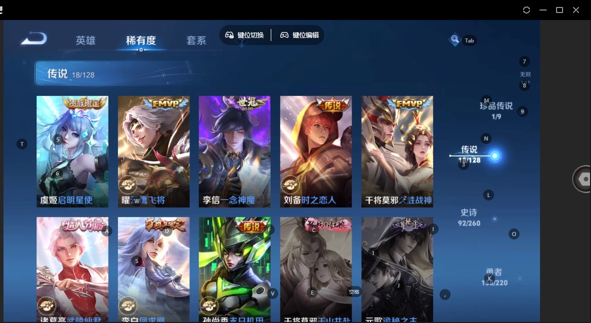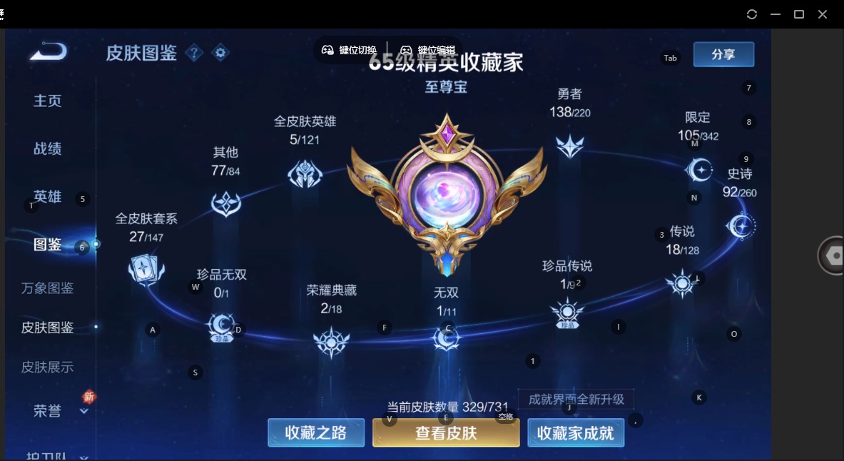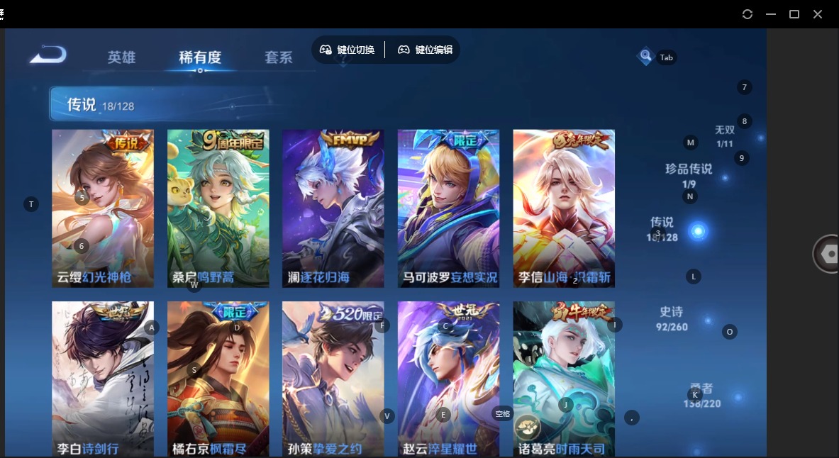 - [11253021]V7 1典藏 3珍品传说 8传说 123英雄 203皮肤 可修改实名 荣耀水晶:弑枪猎影(韩信典藏) 珍品传说:怪盗基德,时之奇旅-孙策,兔狲·蓬尾 传说皮:黄金狮子座,黄金白羊座,地狱之眼,云鹰飞将(小将军),澜逐花归海 珍宝阁皮:女武神 限定皮:逐霄战戟,鸣野蒿,白虎志(电光耗子),时雨天司(水龙头),五谷丰年,逐梦之星,李小龙,大圣娶亲,青春决赛季 史诗皮:茶境仙,器灵·浮梦炉,鸭鸭历险记-刘禅,龙之律动,百相守梦-百里守约,化蝶舞,破空之剑,遇见神鹿,紫霞仙子,黄金分割率,偶像歌手,无限星赏官,魅语,暗夜猫娘,末日机甲-吕布,猫狗日记-孙策,节奏热浪,水果甜心,功夫厨神,德古拉伯爵,暗隐猎兽者,幽灵船长,鬼剑武藏,心灵战警,乐园奇幻夜,天秀·启明,地狱岩魂,诗语江南,拒霜思,缤纷独角兽,乘风破浪,水晶猎龙者,曙光守护者,箭羽风息,圣诞恋歌,鹰眼统帅,魅力维加斯,无心,未来纪元-赵云