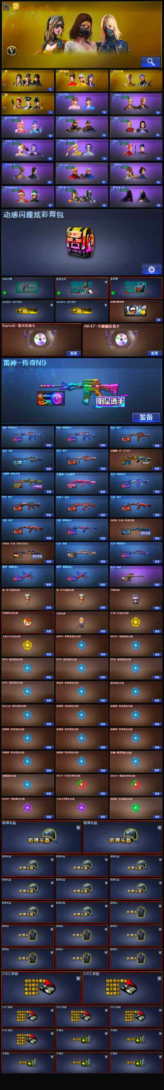 - [11825008]8粉装 9特效枪 9印记 可二次 可修改实名 女号 身法装备:暗影哥特(红眼罩) 优质装备:缤纷油彩(猪妹猪脸妹),M416暖熊萌萌,SCAR-L纯梦嫁纱,PKM江南烟雨,七级M416-暖熊萌萌,千金淑猫,AUG-暖羊咩咩,彩虹独角兽,樱桃泡泡,MK14-樱桃泡泡,幻彩电音,MG-36-幻彩电音,荧海星豚,蜜獾-荧海星豚,Kar98K-巳巳如意 热门装扮:暖熊萌萌,霓裳武神,动感兔斯基,潮萌小黄鸭,迅捷狂鲨,呆萌铁蟹,深海小丑鱼 稀有枪皮:DP-28-豹影疾电 五级特效枪:五级Kar98K-巳巳如意,五级蜜獾-荧海星豚,五级DP-28-豹影疾电,五级AUG-暖羊咩咩,五级SCAR-L-纯梦嫁纱,五级PKM-江南烟雨 四级特效枪:四级MG-36-幻彩电音 三级特效枪:三级MK14-樱桃泡泡 紫色装扮:田园牧歌,轻风白浪,和煦暖阳,SS22特训,SS23特训,幻彩翩翩,妙红点点,白兰地假日,娇憨猪猪,萌趣咩咩,SS21特训,SS31特训套装,冰川特警,霓虹热舞,极速光影,SS30特训套装,云朵鹅,彩虹兔,雪绒豹,乐游熊熊,SS33特训套装,顶瓜瓜,混沌火种,快乐星愿,SS13特训,SS14特训,SS19特训,粉团憨憨,软羊咩咩,吉莉礼服,长空猛禽,缤纷果语,耀眼新星,蓝色守护者,蓝海鲸歌,蜜露汐语,骑行爱好者,魅力单车,鹤鸣,黎明保卫者,龙的传人,柠萌假日,格斗先锋,海岛探路者,夏日音浪,王牌教练,潮流先锋,特殊使命,特训学院,SS28特训,异域银装,石蕴玉辉,鱼渊荷华,玉兔迎春,燕燕于飞,巳巳如意,熊抱抱,俏兔智灵,都市丽猫,青团波波,糖糖葫芦,竞技名士,绒宝小鹅,暗影哥特(红眼罩),小狗蛇点点,深海梦境,2P战斗服款,惊鸿侠骨,SS24特训(SS24特训套装),SS25特训,锦衣飞扬,智谋强哥,SS8特训,大橘大利,SS12特训,SS9特训,SS11特训,耀粉歌者,绒绒粉兔,粉恋花,蓝冰羽,紫幽梦,SS32特训服(SS32特训套装),瑰梦爱神,青玉碎影,绯格组合,萌黄之夏,Z.I.B特工,晨曦轻云,蜜桃派对,琉璃花蕾,恋语绒绒,雪夜云雾,果冻柠檬,弄潮海豚,光之冒险 优质战备:墨龙九天降落伞,莲影清波降落伞,闲梦青缨降落伞,萌物绒绒降落伞,绝色倾城降落伞,时光之吻降落伞,时光之誓飞行器,幻彩电音降落伞,冷漠罗丽降落伞,荧海星豚降落伞,月影灵韵降落伞,智耀战神降落伞