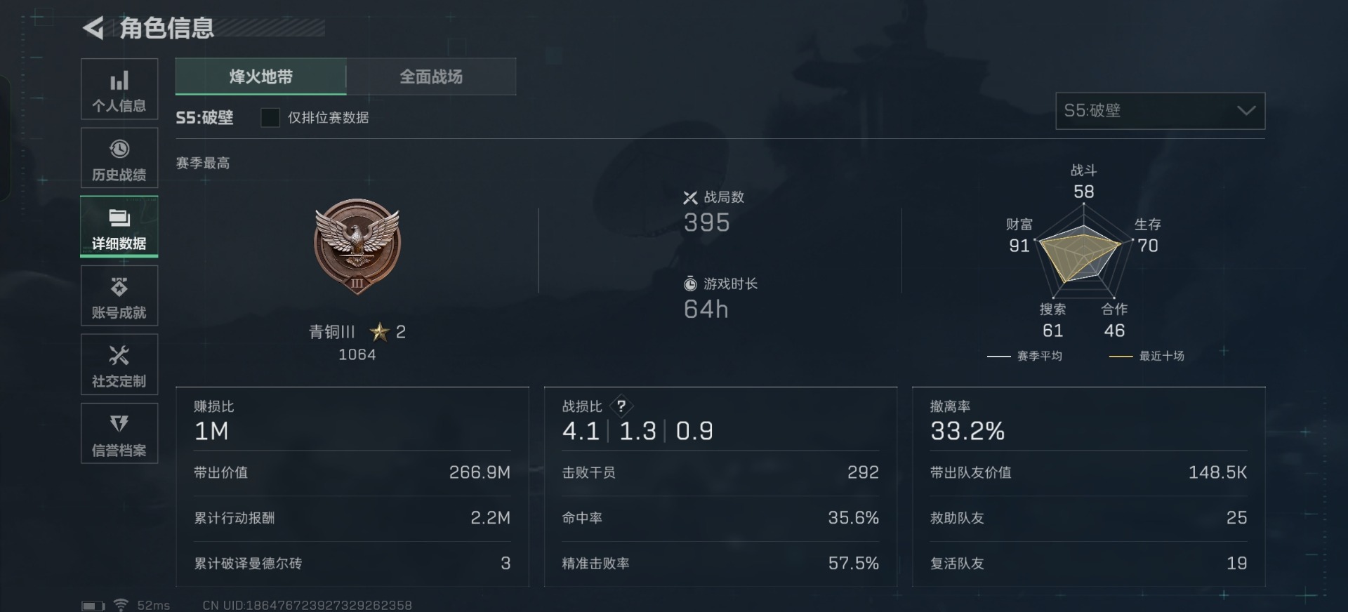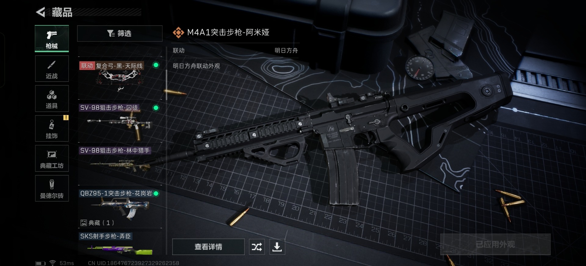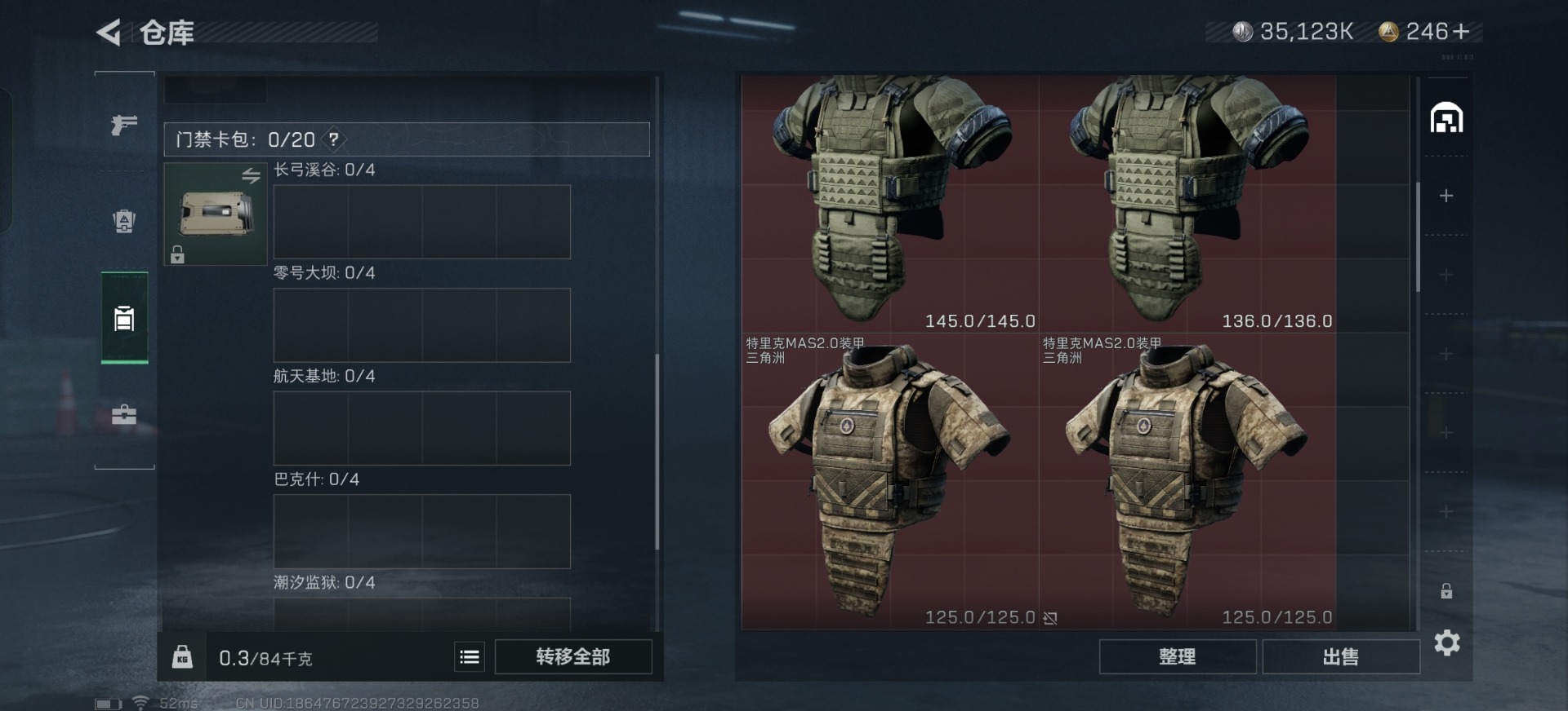 [11164075]总资产:74.6M 6传说枪械 哈夫币:35.123K 可二次 可修改实名 烽火地带段位:青铜 全面战场段位:校官 传说武器皮肤:勇士冲锋枪-能天使-午夜邮差,M4A1突击步枪-阿米娅,复合弓-黑-天际线,AWM狙击步枪-捞点薯条,腾龙突击步枪-捞点薯条,93R-捞点薯条 史诗武器皮肤:SV-98狙击步枪-林中猎手,SV-98狙击步枪-囚徒
