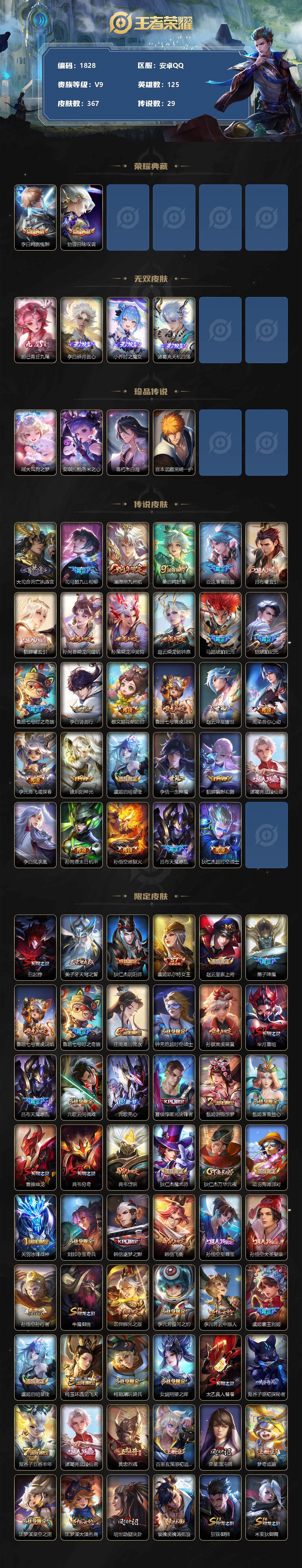 [12308203]【商品标题】:安卓Q-V9-永恒钻石II段位-125英雄-367皮肤-2典藏-0珍品无双-4无双-4珍品传说-29传说-103史诗
