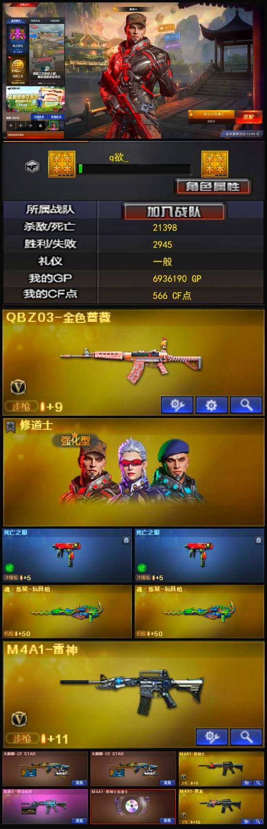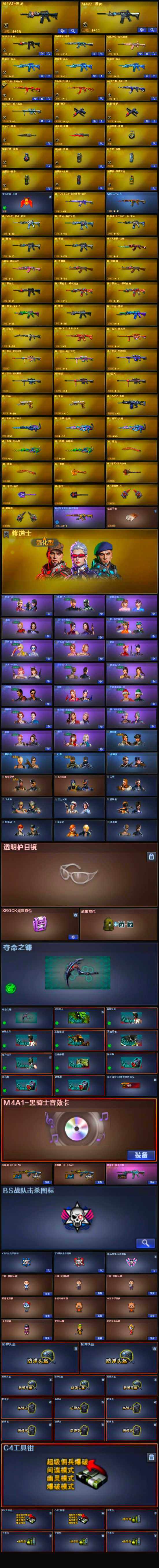 【英雄级武器】:马来剑-夜魔,斩神刀-雷暴,QBZ03-金色蔷薇,M4A1-雷神,M4A1-黑龙,M4A1-黑骑士,黑骑士-海王*3,AK47-B-常胜将军,沙鹰-修罗*2