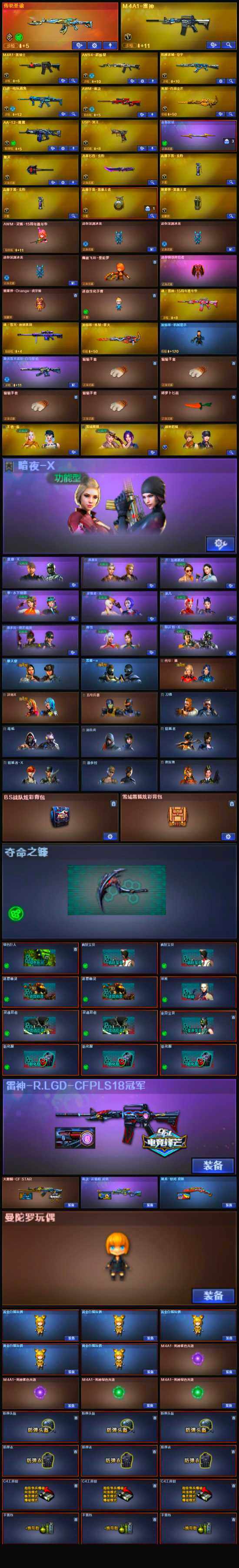 【英雄级武器】:白虎-电玩蓝兔,M4A1-雷神,M4A1-黑骑士,AN94-超新星,AWM-裁决,AA-12-雷霆,死神-雪域霜狐,AWM-昌龙,M4A1-赤狱骑士,USP-冥王,擎天
