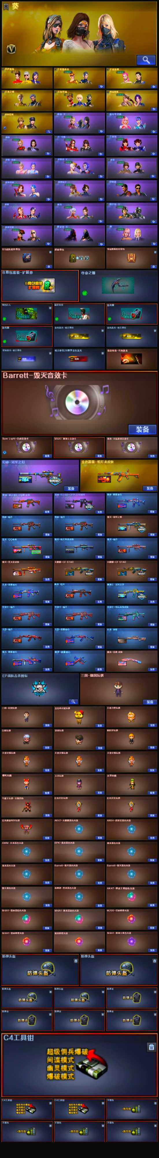 【音效卡】:屠龙-云海游龙音效卡,M4A1-黑骑士音效卡,Barrett-毁灭音效卡,Scar Light-白虎音效卡