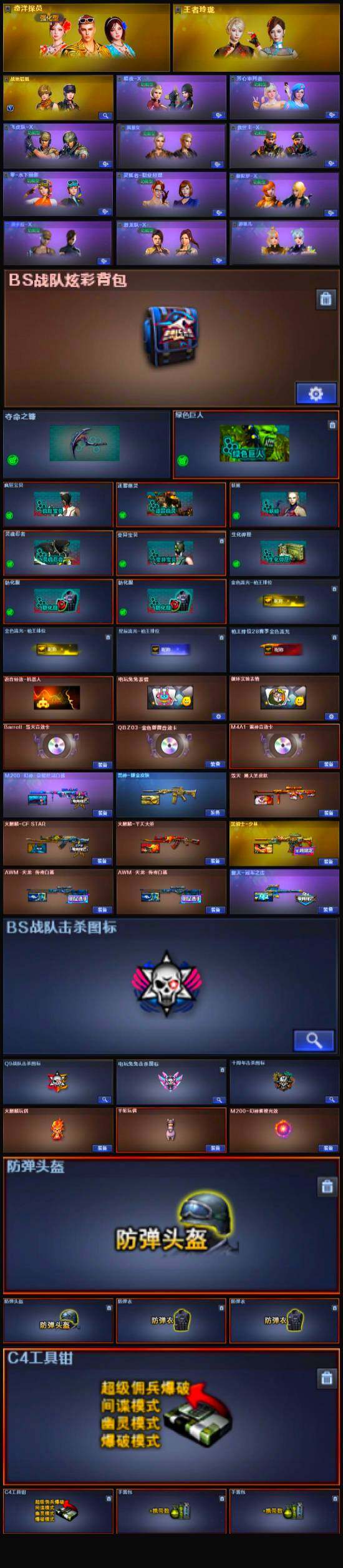 - [12116245]可二次 可修改实名 V5 1王者武器 139英雄武器 1英雄角色 261万化 大师SS 武器:M200-幻神,TAC-慈,KSG-孟获,81式-光明之神,巴雷特-毁灭,M4A1-堕天神,M4A1-死神,M4A1-雷神,AK47-燎天净火,AK47-黑武士,M4A1-黑龙,M4A1-黑骑士,AK47-木兰,98K-黑骑士,QBZ19-天使,QBZ03-金色蔷薇,QBZ03-死神,AUG-机械纪元,刘易斯-天使,QBB95-极光,双持斯泰尔-天使,MK5-极光,M4A1-龙血,M4A1-运输船,M4A1-心动次元,AK47-猩红传说,AK47-心动次元,AK47-血武士,M200-心动次元觉醒,98K-星神,09式狙-天神,AWM-裁决,AWM-天龙,AK12-天启,SCAR-探星者,M4A1-夏清,CBJ-MS-毒蜂,加特林-堡垒,地狱火,地狱烈炎,CZS2-心动次元,AA12-火药觉醒,M1216-血月,地狱烈樱·一觉,MK47-鼓龙,M14EBR-拂影,AK47-破空冰刃,HK416-极光,9A91-魔蜥觉醒,AN94-赳赳秦师,M4A1-太白诗仙,墨刃-幻神,穷奇铁扇,双持柯尔特-极光,M16-恶魔,沙鹰-修罗,左轮-黑武士,改装GLOCK-木兰,气手枪-血月,沙鹰-神兵修罗,手斧-机械迷城,蝴蝶刀-极光,USP-太白诗仙,百战巾帼枪,马来剑-毁灭,尼泊尔-冰锋觉醒,斩魔剑-天使,M4A1-铁胆虎魄,擎天觉醒,血阳,神罚战斧,丛林匕首-庆龙觉醒,秋逸,麒麟刺,屠龙,唐刀-大唐荣耀,血月,斩魔刀,女皇利刃-铁胆虎魄,烟雾弹-雷霆,闪光弹-雷霆,高爆手雷-雷霆,黑骑士烟雾弹,黑骑士闪光弹,黑骑士手雷,幻兽烟雾弹,幻兽闪光弹,幻兽手雷,烟雾弹-游骑兵,闪光弹-游骑兵,燃烧弹-游骑兵,高爆手雷-无限,手雷-云海游龙,掠夺者P365-虹舞,DDM4-PDW-星际宇航觉醒,巴雷特-朱雀,AWM-指南针觉醒,QBZ97-浩瀚征途,烟雾弹-神工天巧,M14EBR-葫芦山庄,蟒蛇-鼓龙,双持沙鹰-元让,龙爪手-鼓龙,鹰爪-迷城红光觉醒,气勇胆烈戟,王者之竞手雷,高爆手雷-神工天巧,分裂雷-偃蛇,SCAR-心动PICK,思召剑,破邪蛇棍觉醒,马来剑-耀金伯爵,甩棍-卧龙觉醒,烟雾弹-星际宇航,G3A3-衍神兵,闪光弹-遁天梭-飞行,烟雾弹-遁天梭-重山盾,HK417-炎龙铠甲