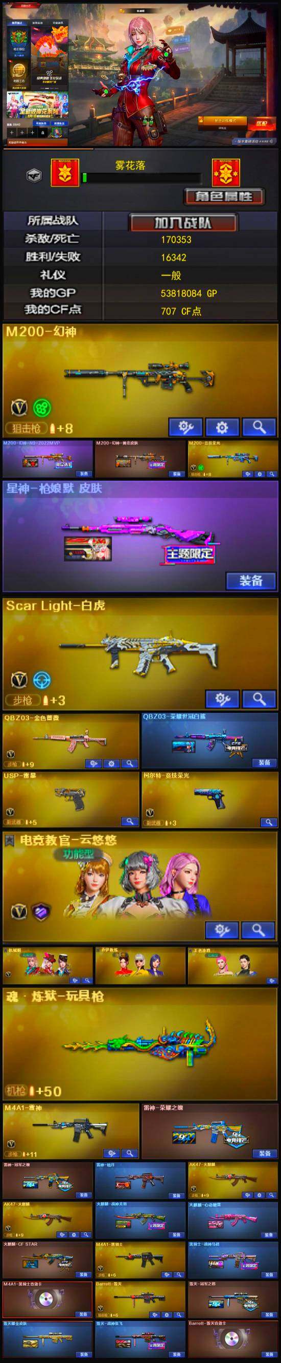【英雄级武器】:M200-竞技荣光,柯尔特-竞技荣光,擎天-竞技荣光,高爆手雷-竞技荣光*2,烟雾弹-竞技荣光*2,闪光弹-竞技荣光*3,麒麟刺-堕天神*2,USP-雷暴,烈火-动感闪耀,天神-动感闪耀,屠龙-动感闪耀,手雷-动感闪耀,QBZ03-金色蔷薇,Scar Light-白虎,无影-神兵利器,M4A1-雷神,M4A1-黑骑士,AK47-火麒麟*2,Barrett-毁灭,M200-幻神,黑武士-锦绣游龙,AK47-B-常胜将军,屠龙