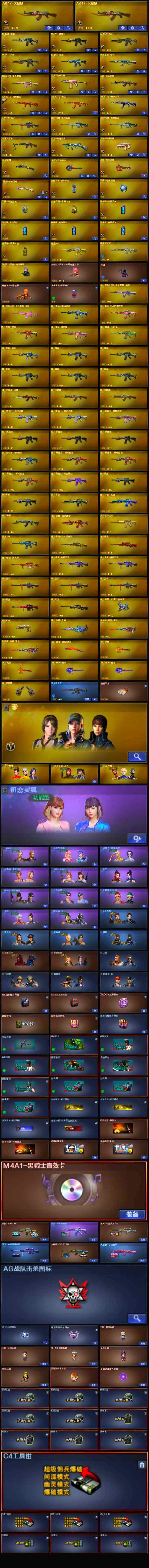 【英雄级武器】:高爆手雷-竞技荣光,烟雾弹-竞技荣光*2,闪光弹-竞技荣光*2,幻灵之锋,烈火-动感闪耀,天神-动感闪耀,屠龙-动感闪耀,手雷-动感闪耀,QBZ03-金色蔷薇,M4A1-青龙,无影-神兵利器,M4A1-雷神,M4A1-黑骑士,RPK-盘龙,AK47-火麒麟*2,Barrett-毁灭,M4A1-龙血*2,AK-47-猩红传说,AK47-B-常胜将军,擎天-云海游龙